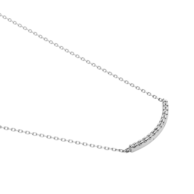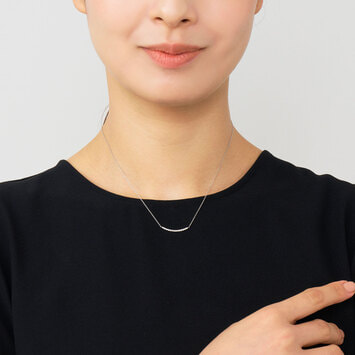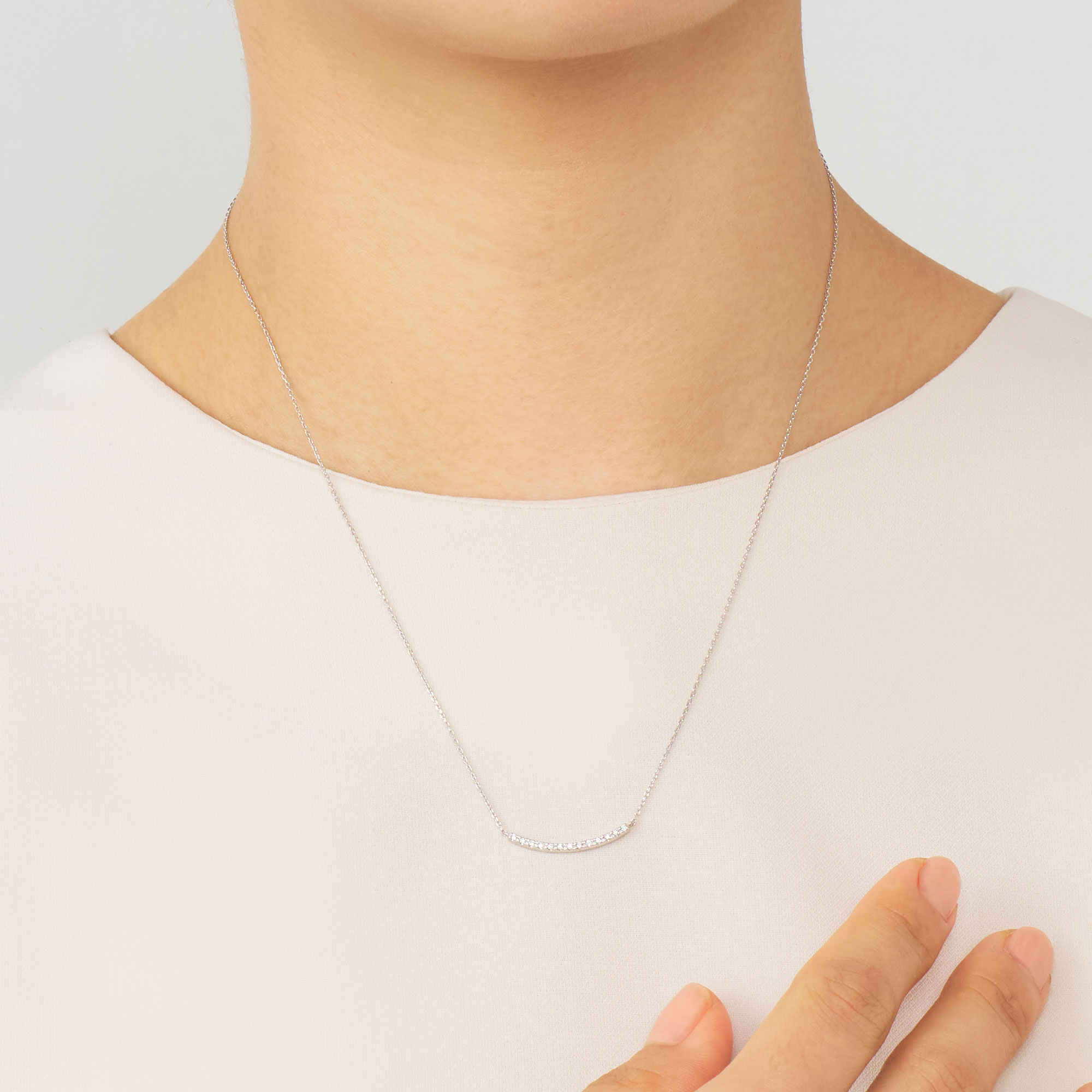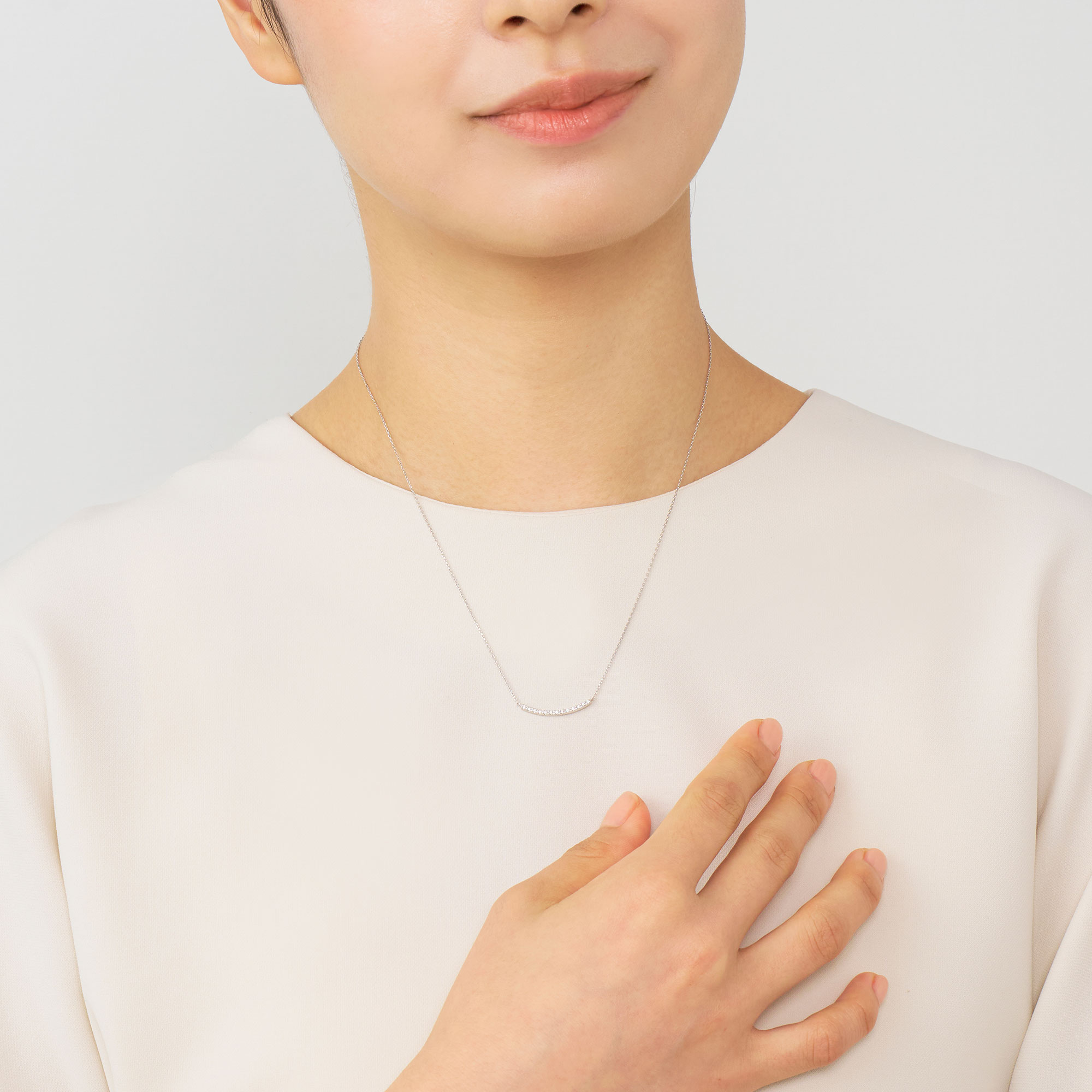首元のラインに沿うようにデザインされた緩やかなカーブをダイヤモンドの光の連なりが眩しくきらめかせます。