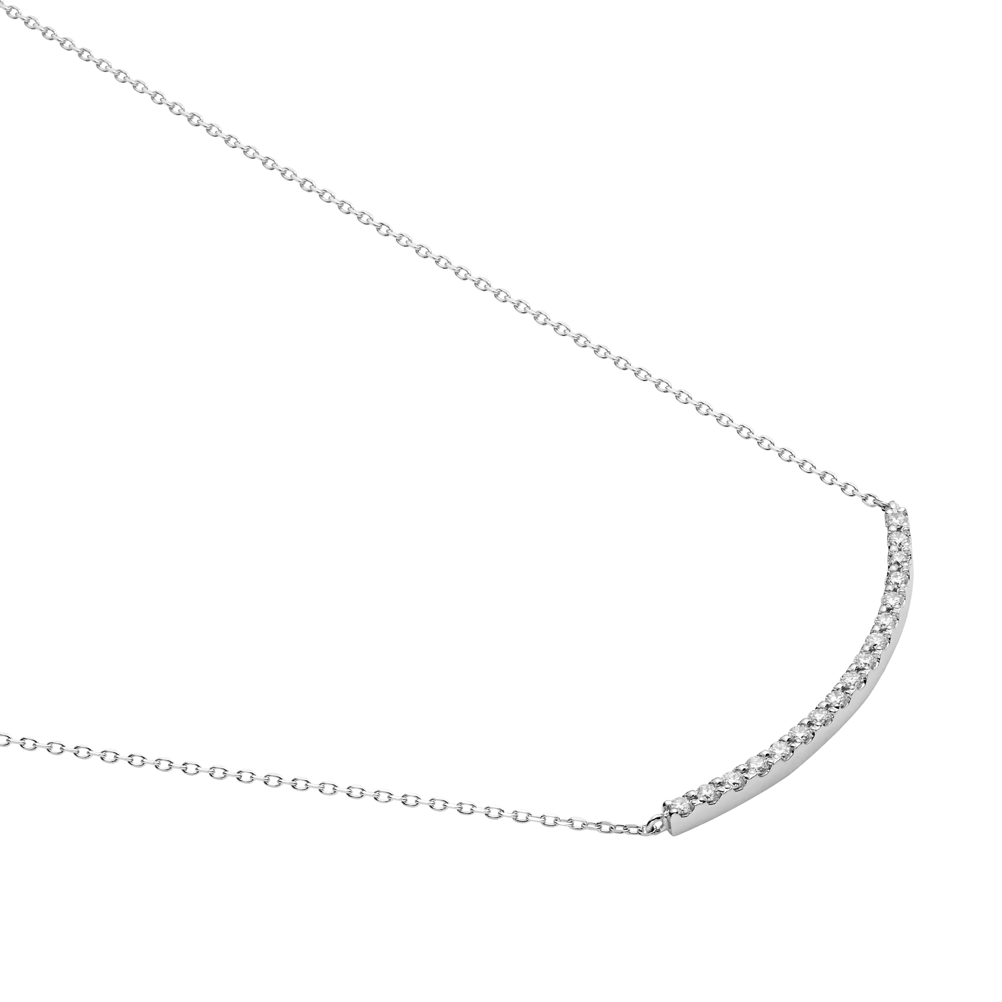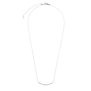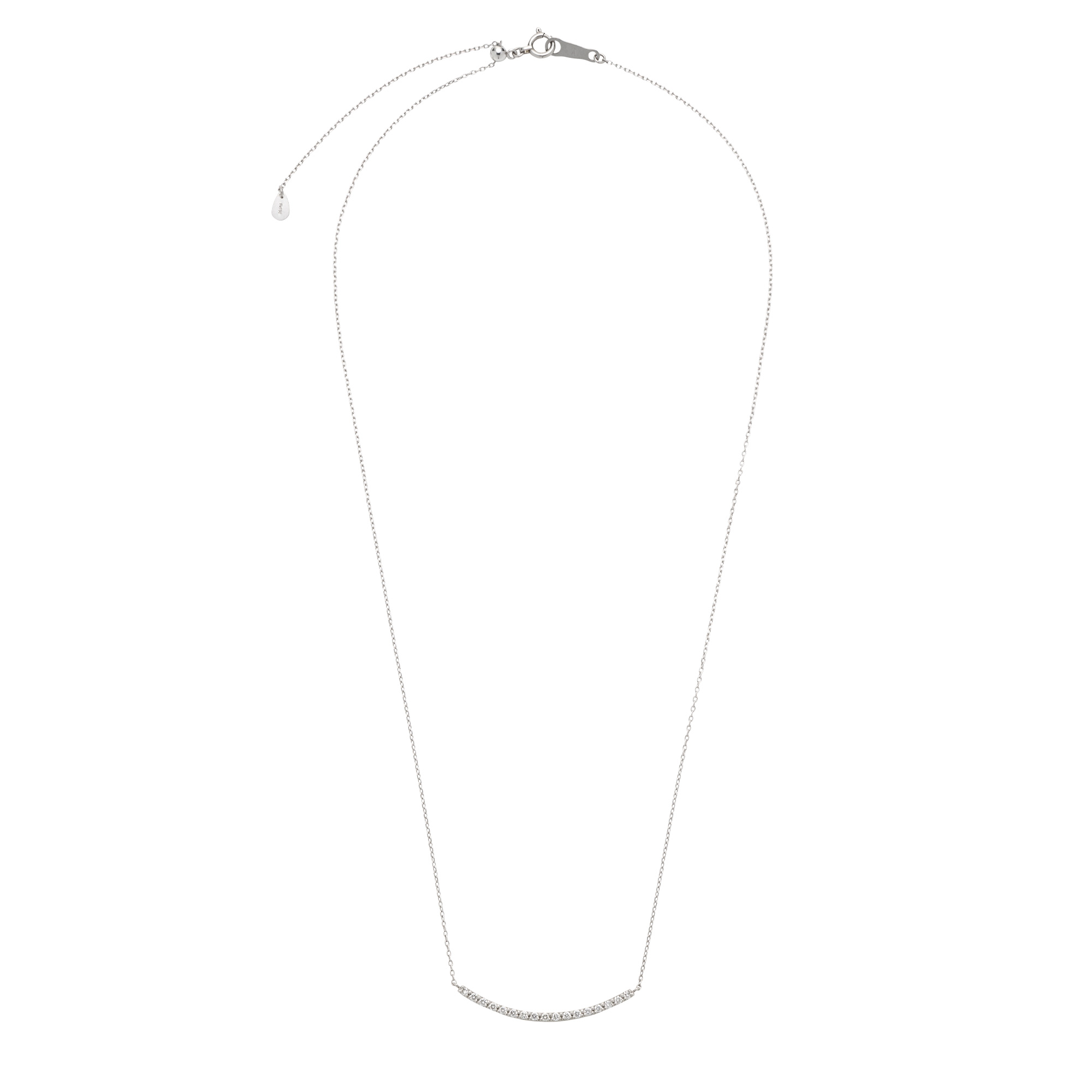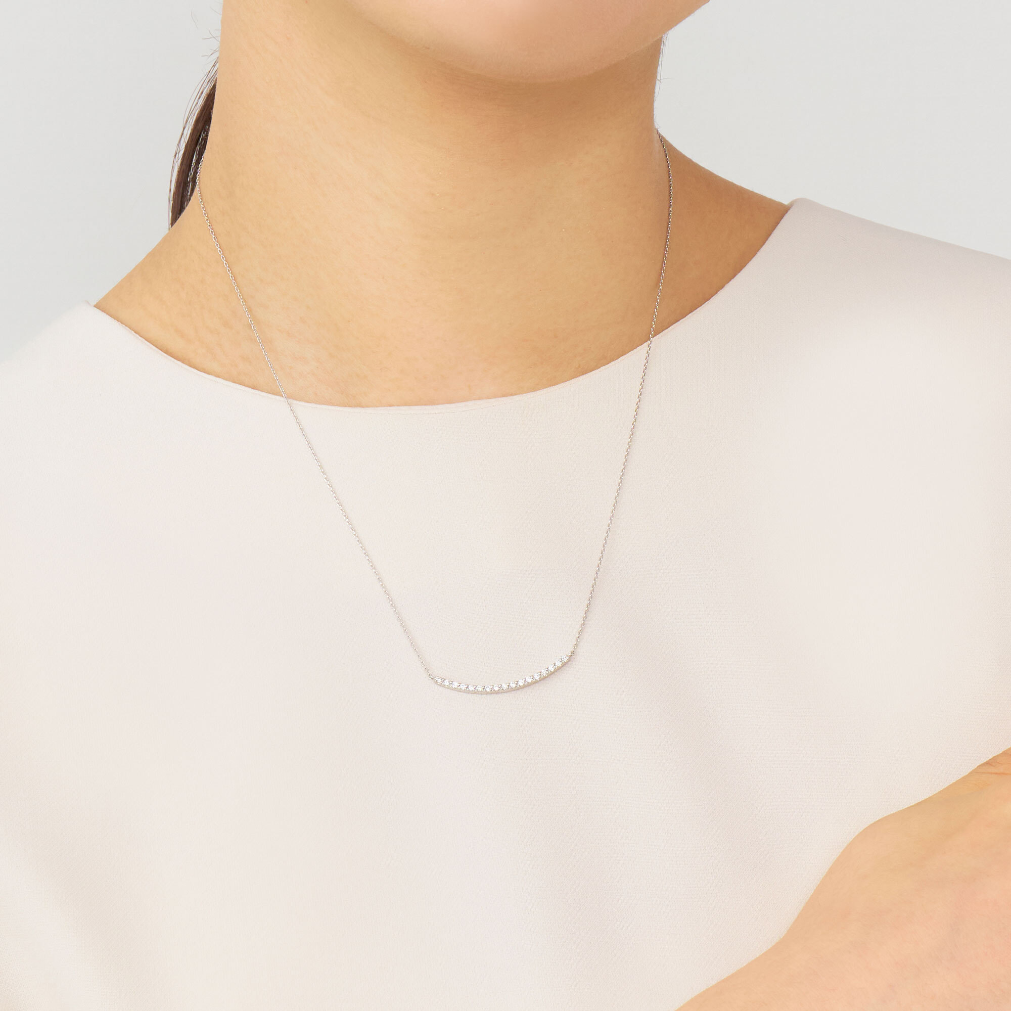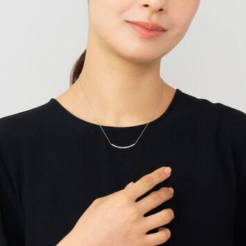 首元のラインに沿うようにデザインされた緩やかなカーブをダイヤモンドの光の連なりが眩しくきらめかせます。均一な細身のラインは今の気分を象徴し、モダンでこなれた印象を与えてくれます。