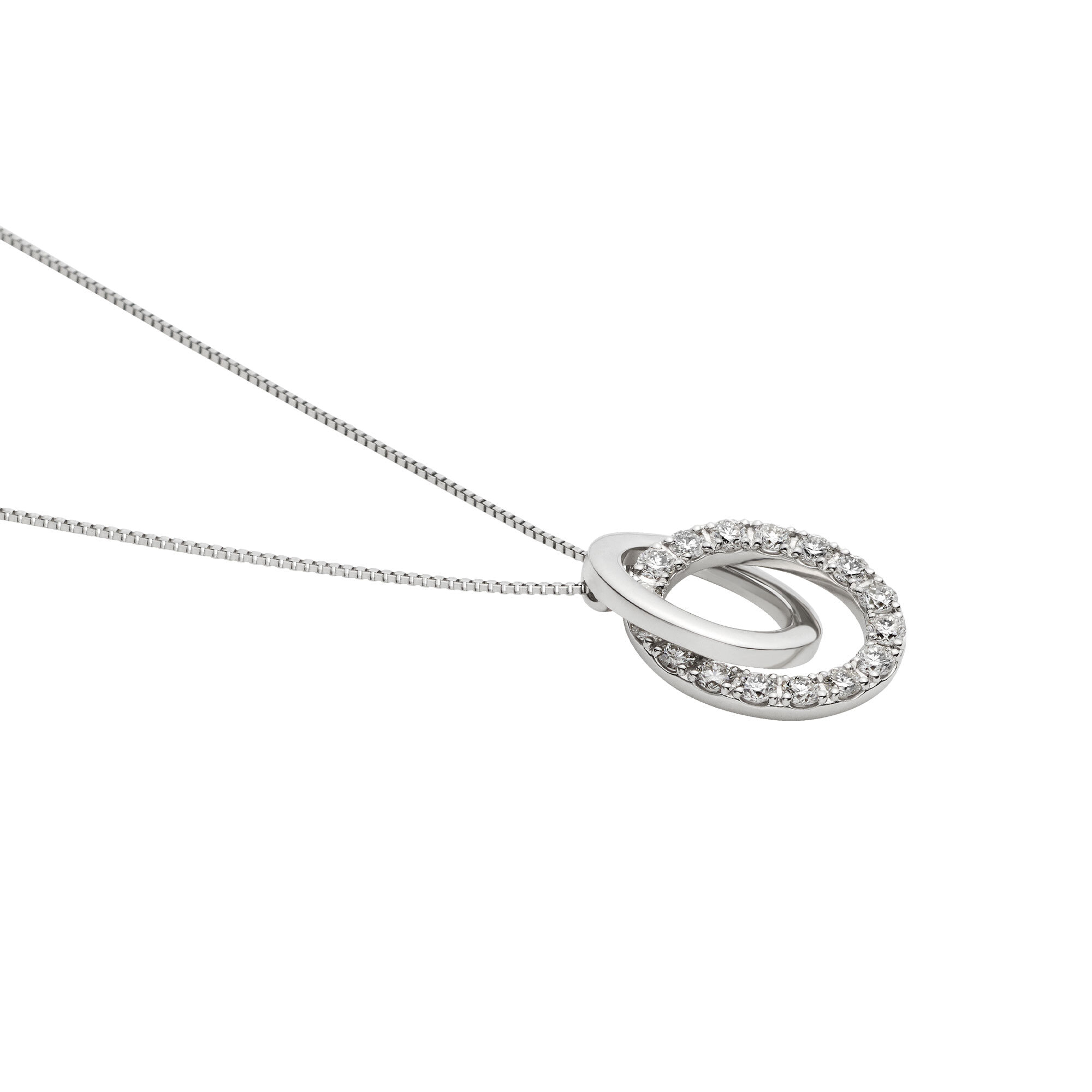 プラチナの艶とダイヤモンドの煌めき、互いの魅力を引き立て合う2つの輝きのサークルが交差したデザイン。