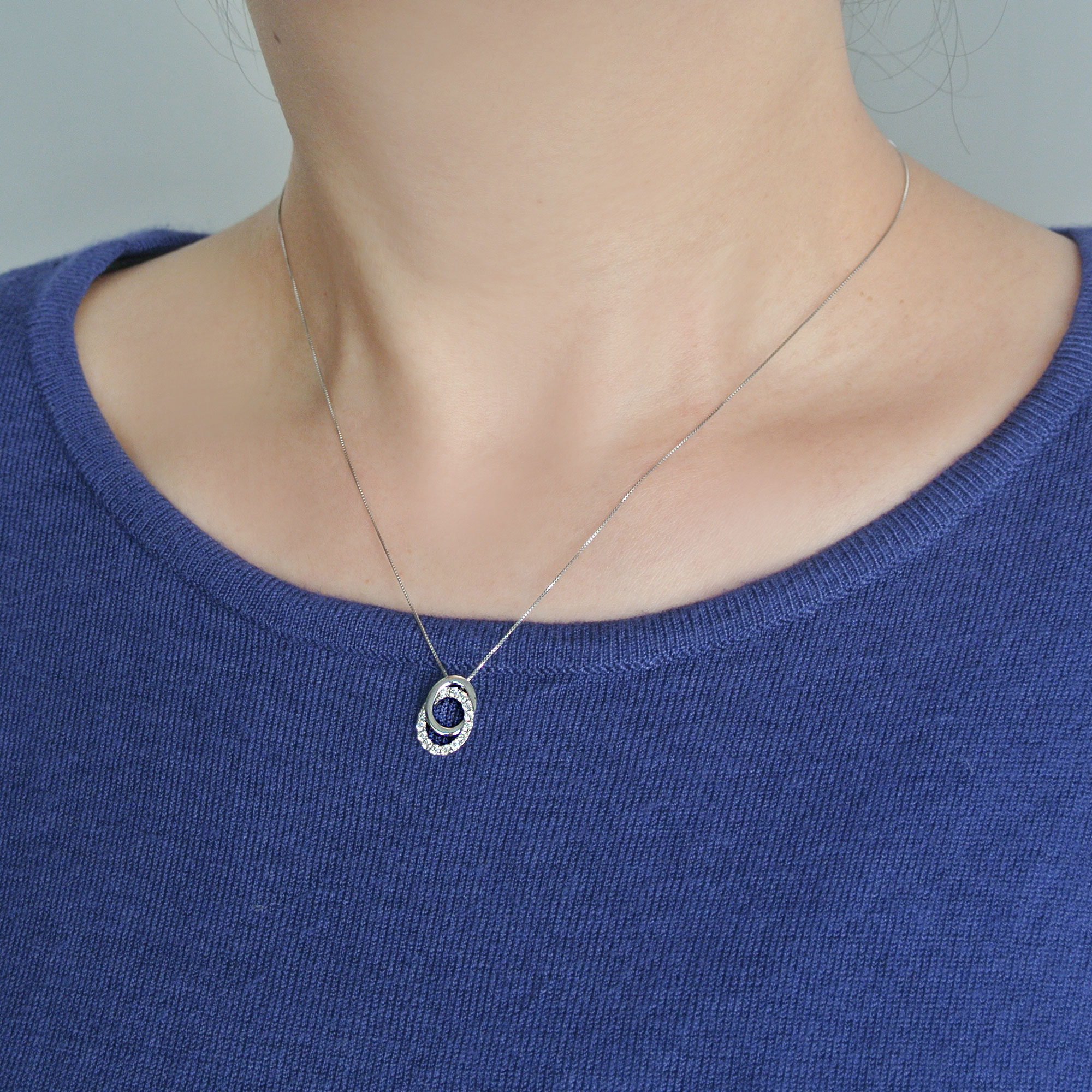 「永遠」を象徴するといわれるサークルをモチーフに、どこまでも途切れない円周率(3.14…)にちなみ計0.314ctのダイヤモンドを贅沢に使用したネックレス。