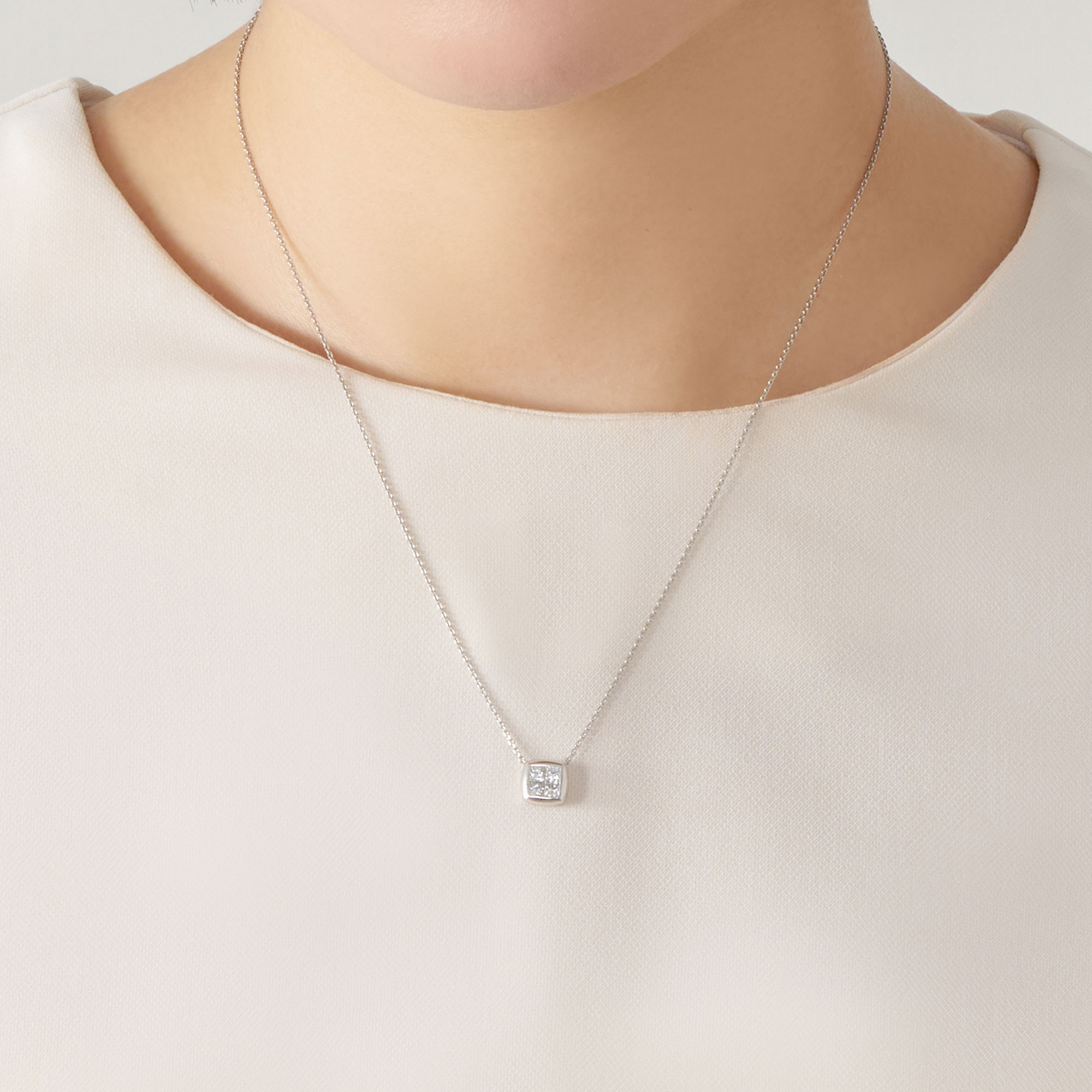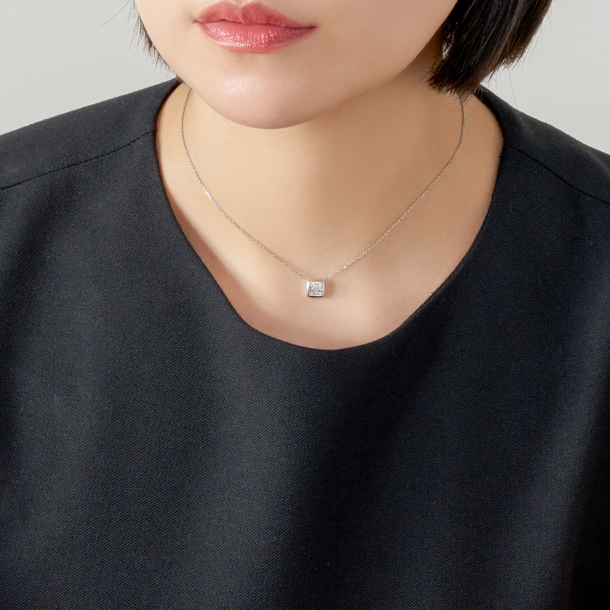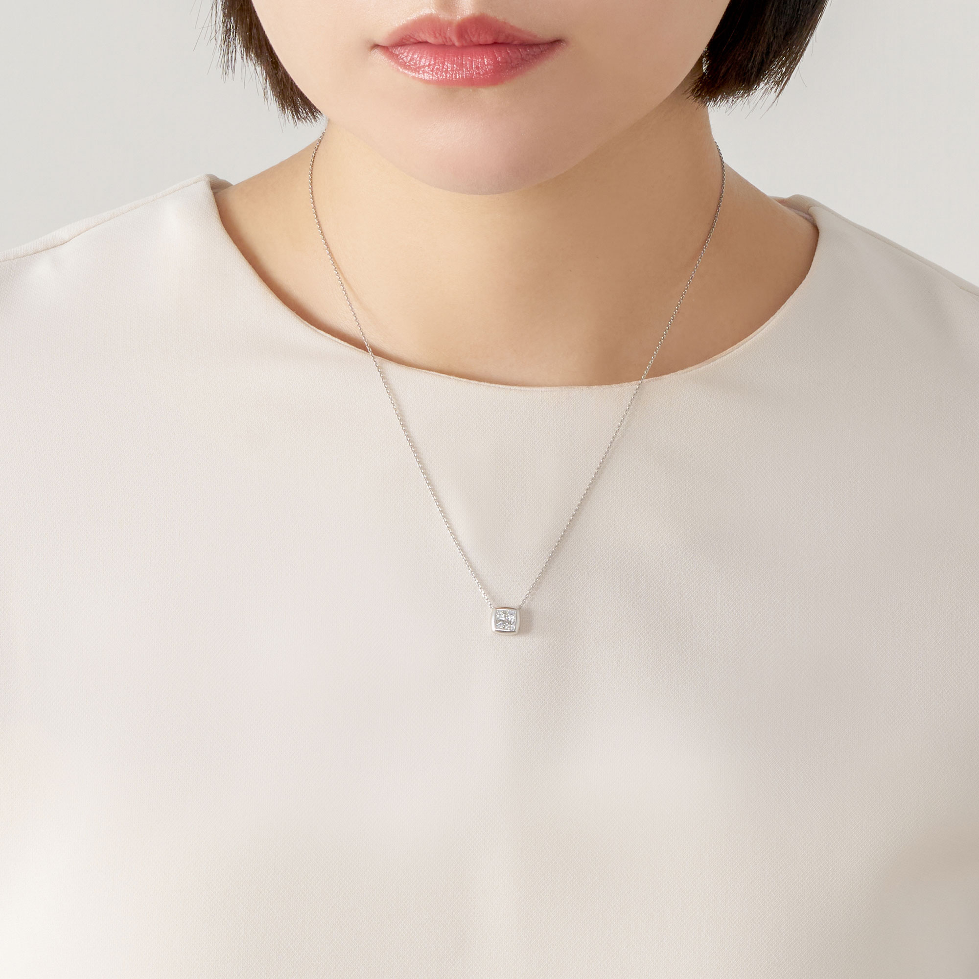 プラチナの気品ある艶やかな光沢は、プリンセスカットの端正なフォルムを引き立て凛とした品格を与えます。