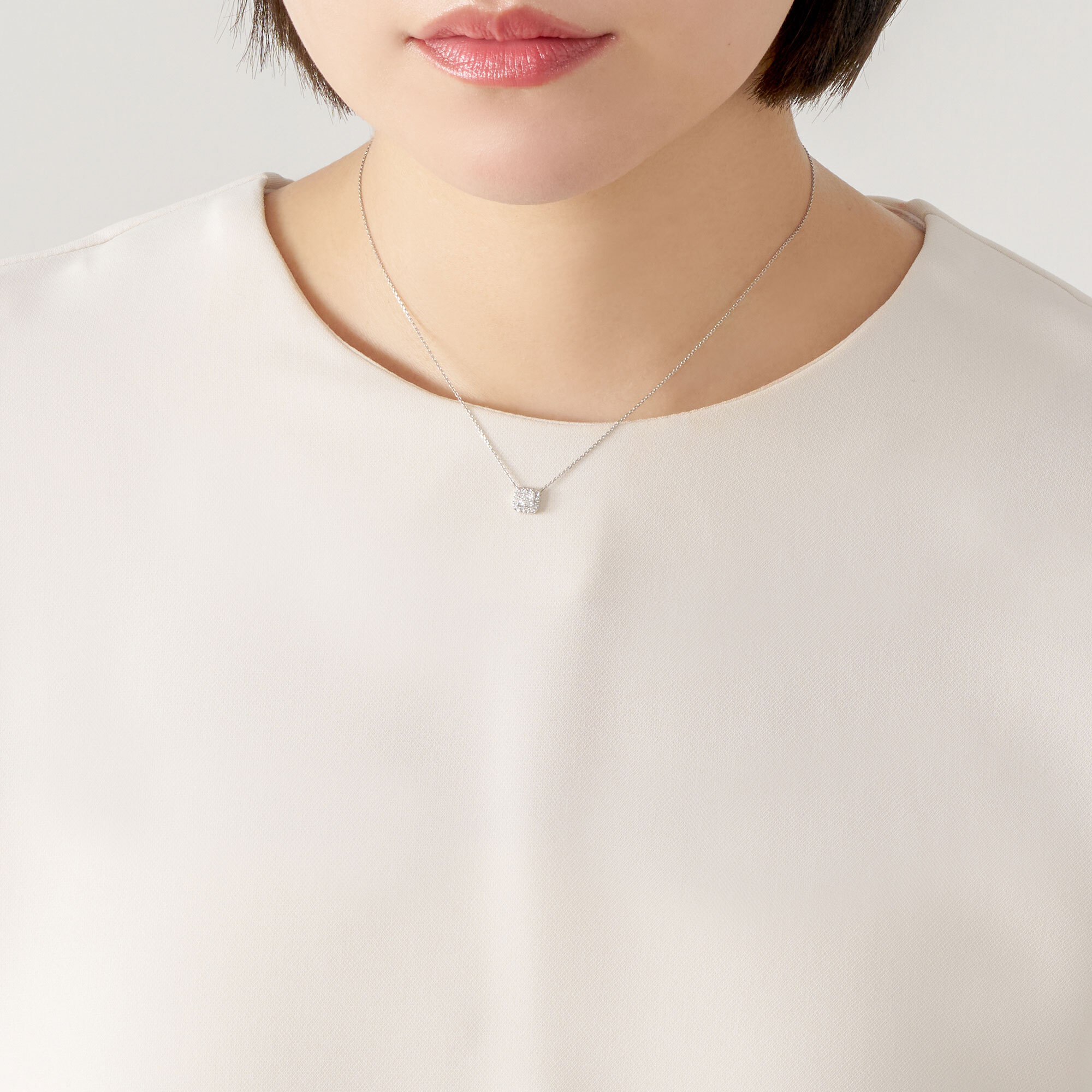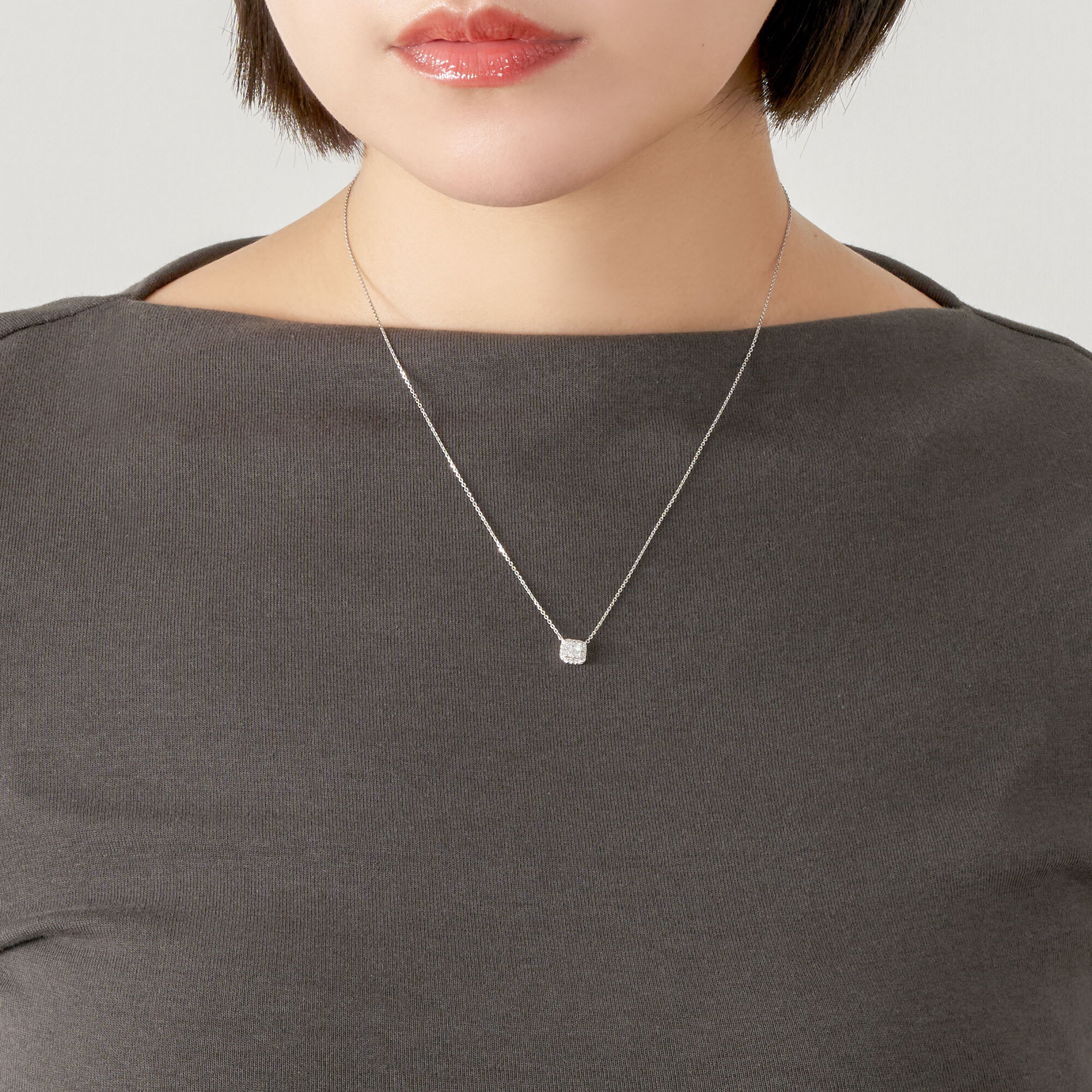 程よく厚みを持たせることでトップの存在感をさらに確かなものとし、胸元をエレガントな輝きで満たしてくれます。