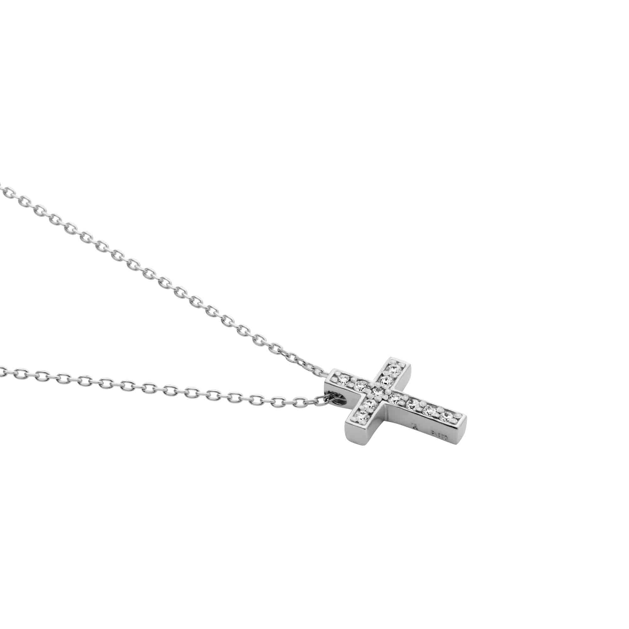 プラチナと煌くダイヤモンドで描くクロスのシルエットが胸元を上品にみせてくれます。
