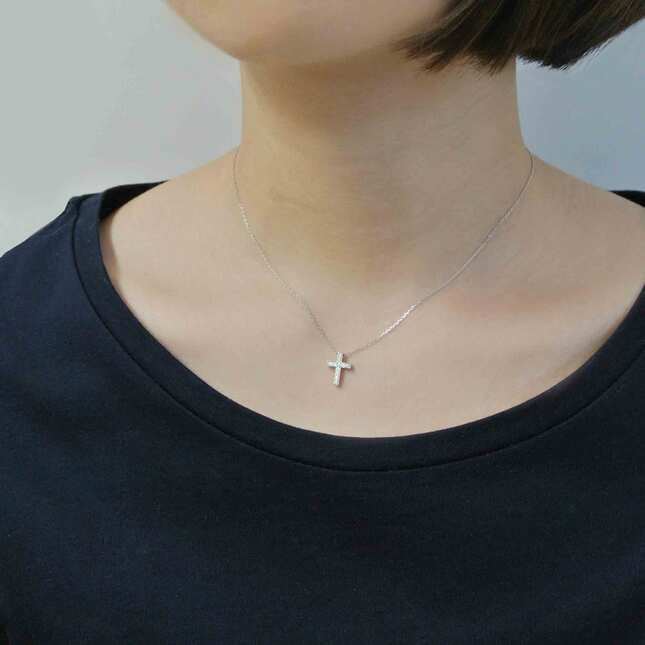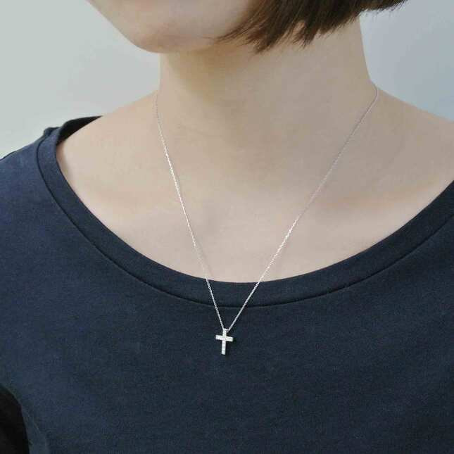 シンプルなコーデにさらっと着けたい、定番のクロスモチーフネックレス。