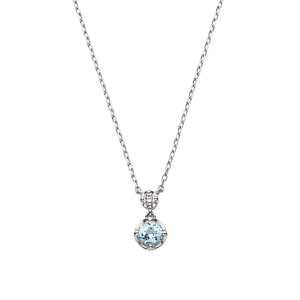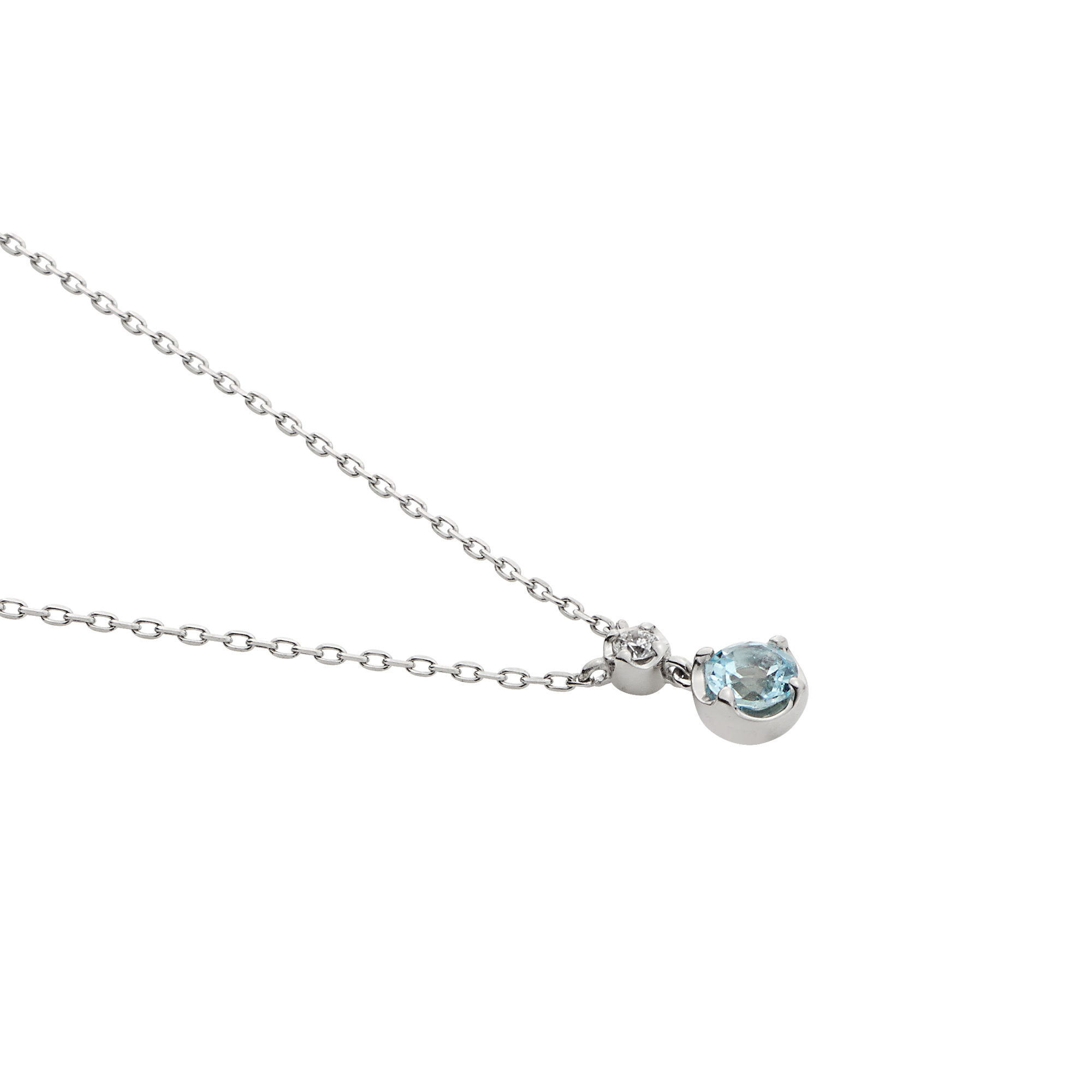 瑞々しい輝きのブルートパーズに煌めくダイヤモンドを添えた、上品なプラチナネックレス。