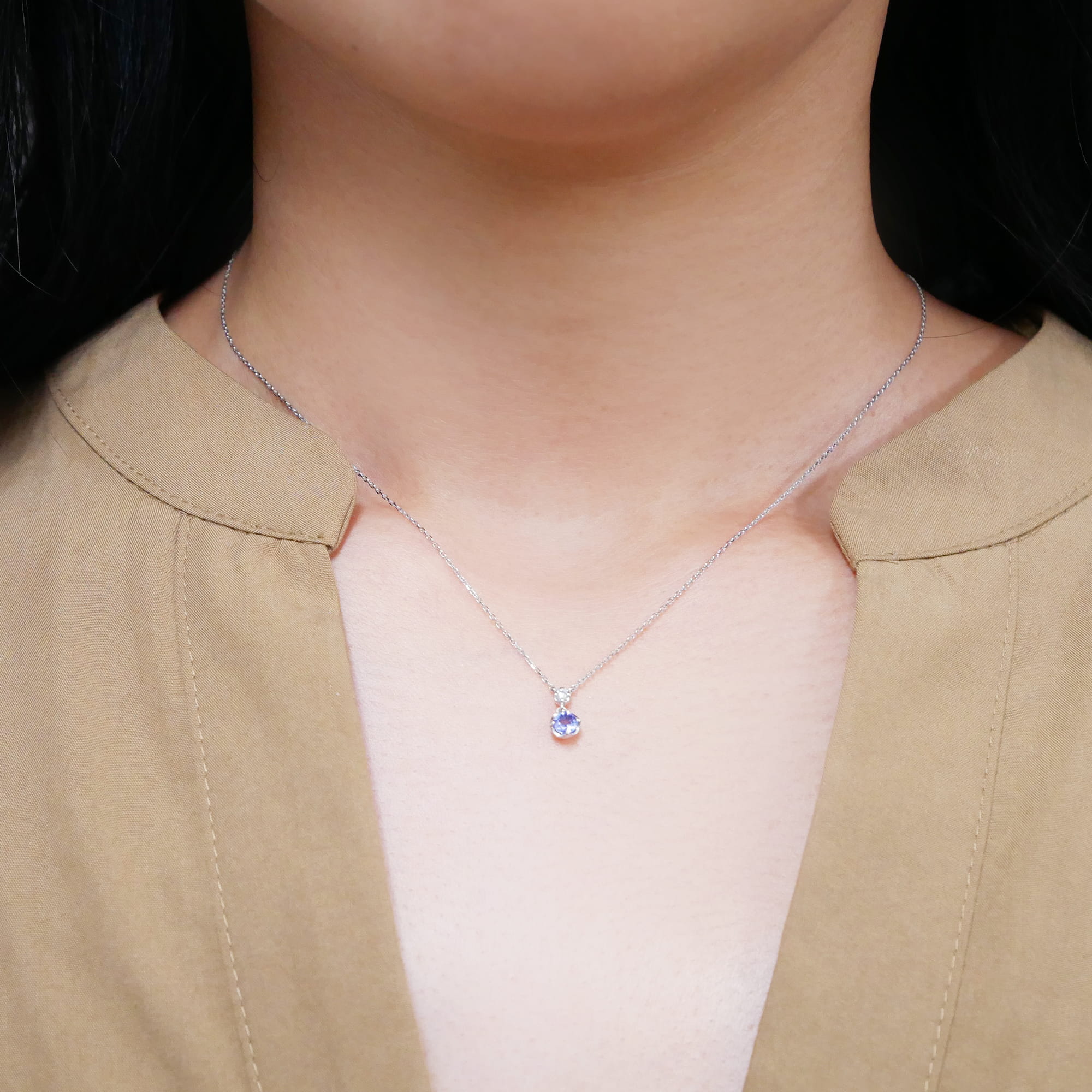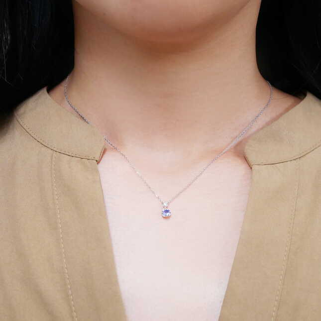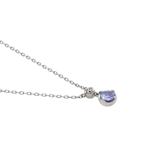 瑞々しい輝きのタンザナイトに煌めくダイヤモンドを添えた、上品なプラチナネックレス。
