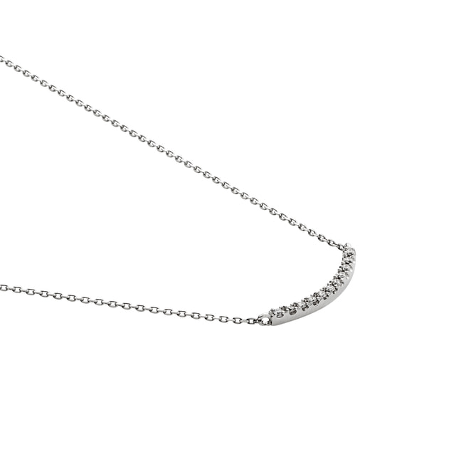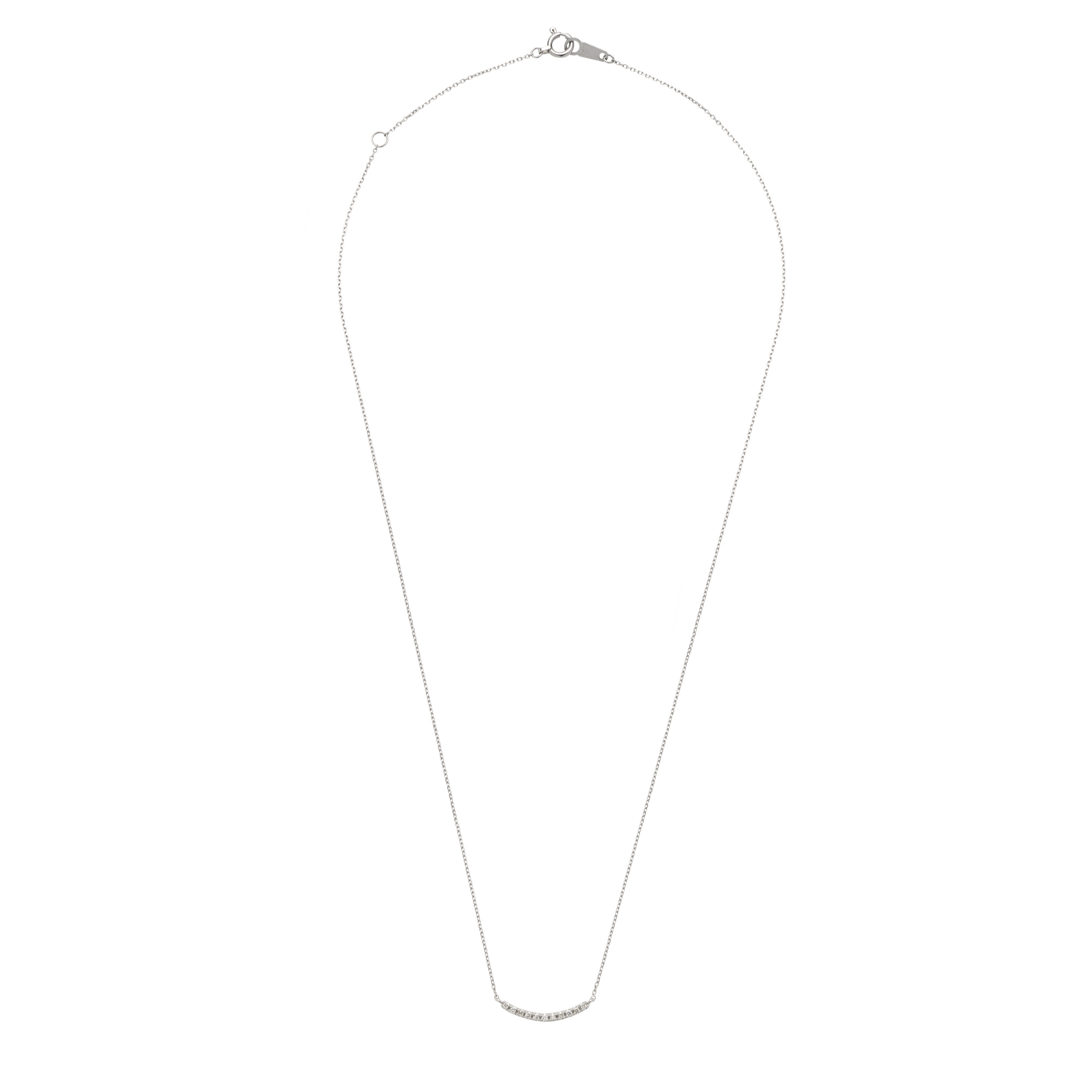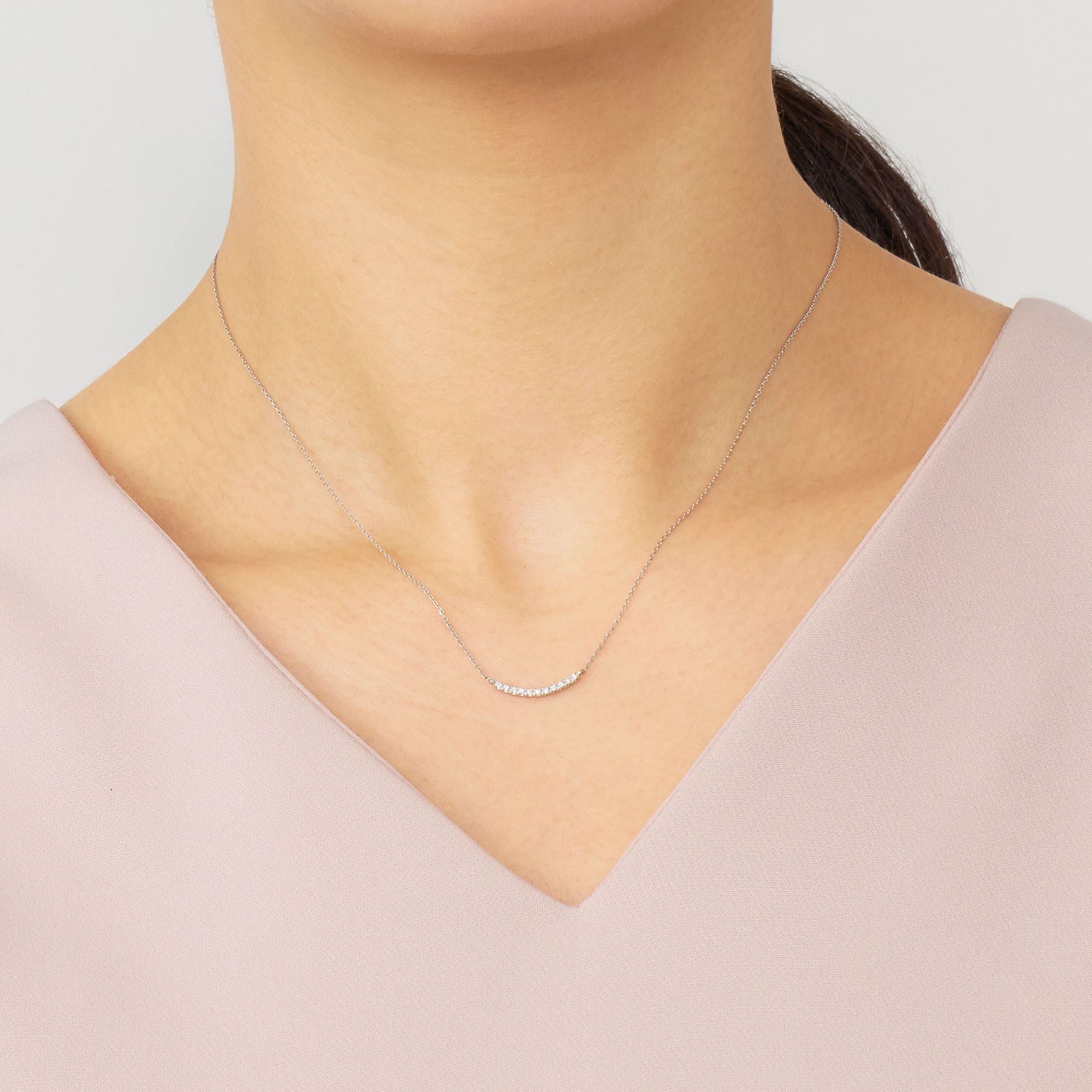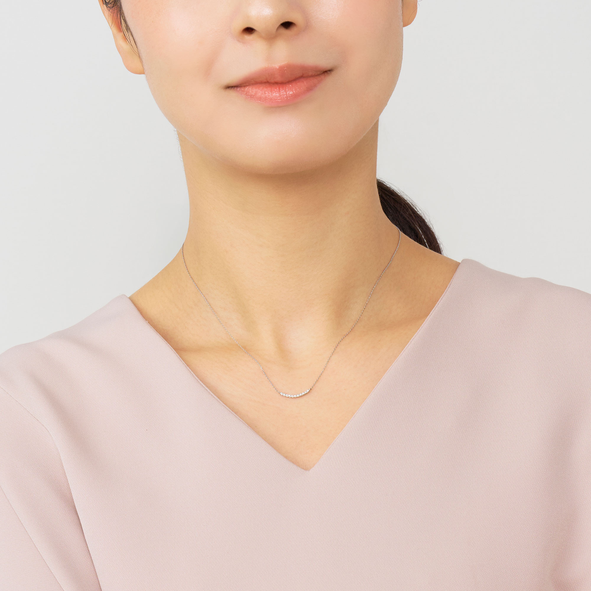 首元のラインに沿うようにデザインされた緩やかなカーブを、ダイヤモンドの光の連なりが眩しくきらめかせます。