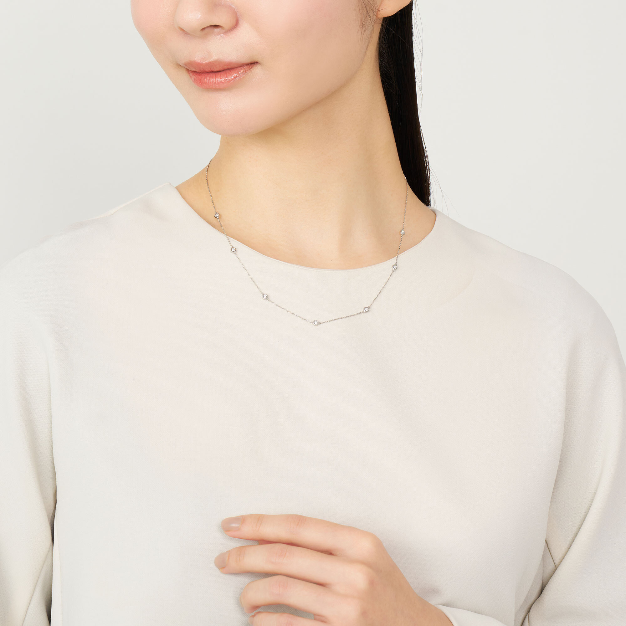プラチナのチェーンに粒選りのダイヤモンドをあしらった、ステーションタイプのネックレス。