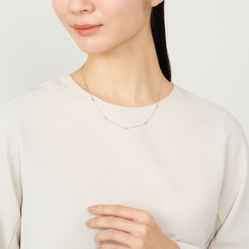 プラチナの上質な光沢感が女性らしさを引き立て、45cmのチェーンが、胸元に凛とした清潔感をプラスしてくれます。