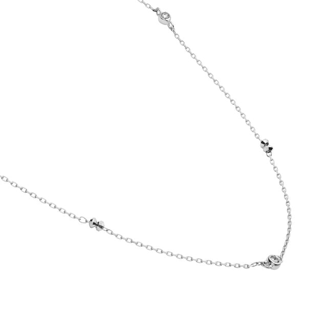 プラチナのチェーン・ミラーカットパーツにダイヤモンドをあしらったネックレス。