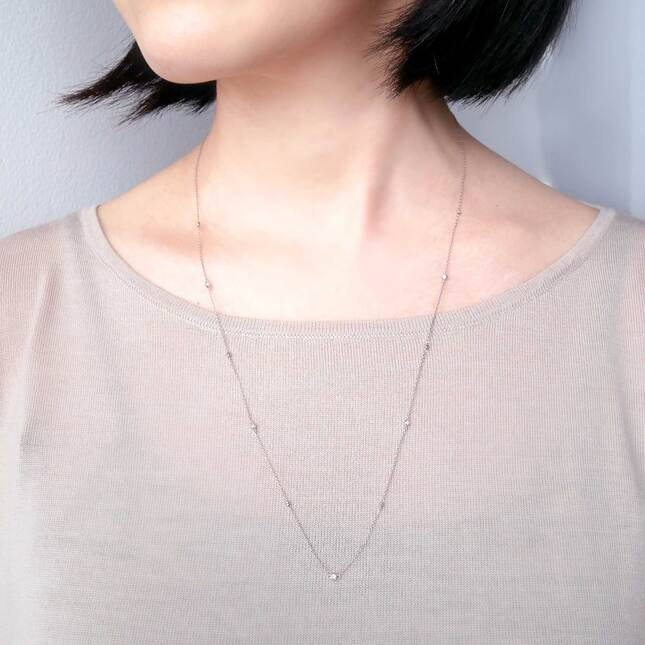 プラチナの上質な光沢感が女性らしさを引き立て、胸元に凛とした清潔感をプラスします。