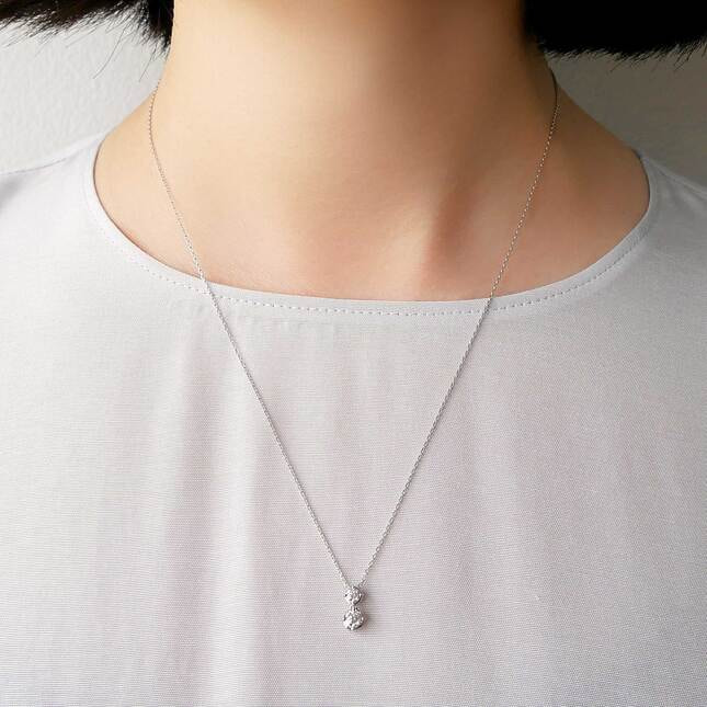 2石のダイヤモンドのまばゆい輝きが魅力的なネックレス。