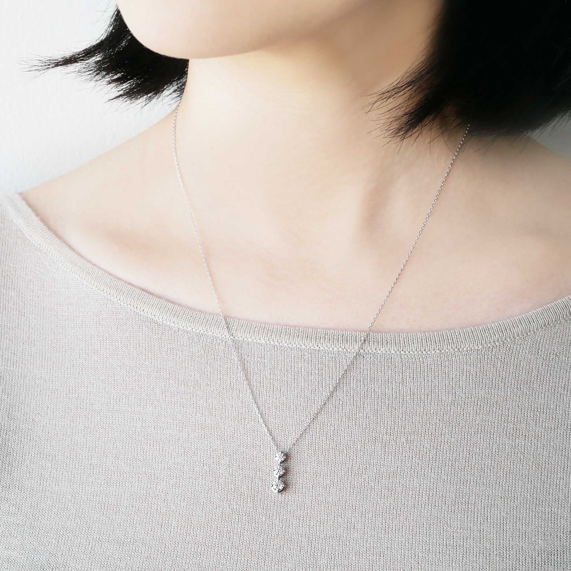3石のダイヤモンドのまばゆい輝きが魅力的なネックレス。