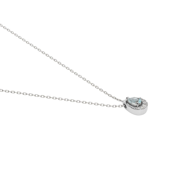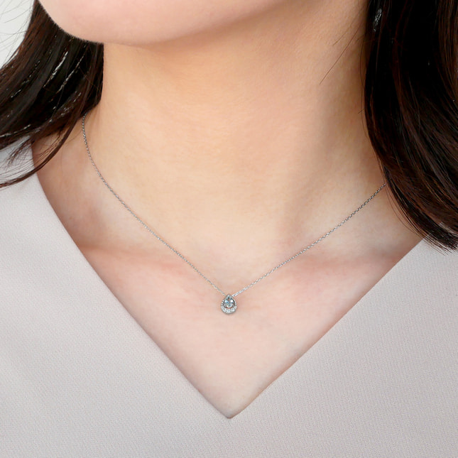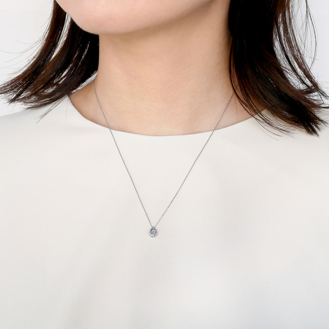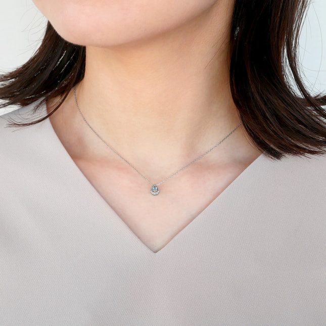 プラチナとダイヤモンドの輝きが、アクアマリンの美しさを引き立てるネックレス。