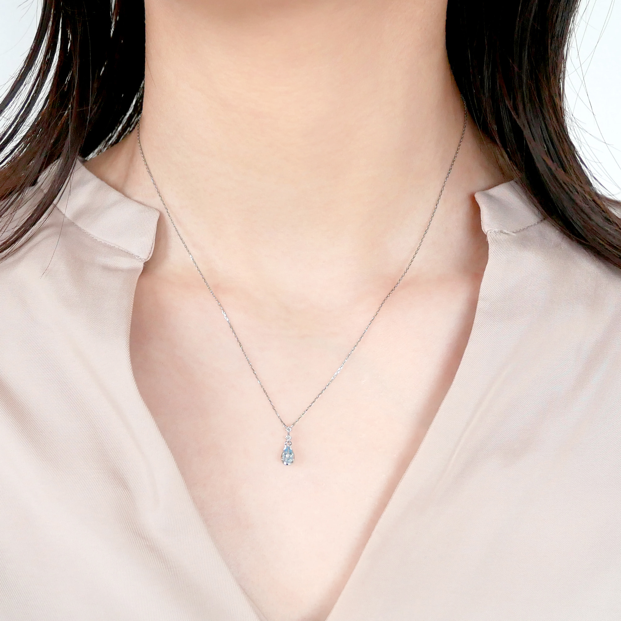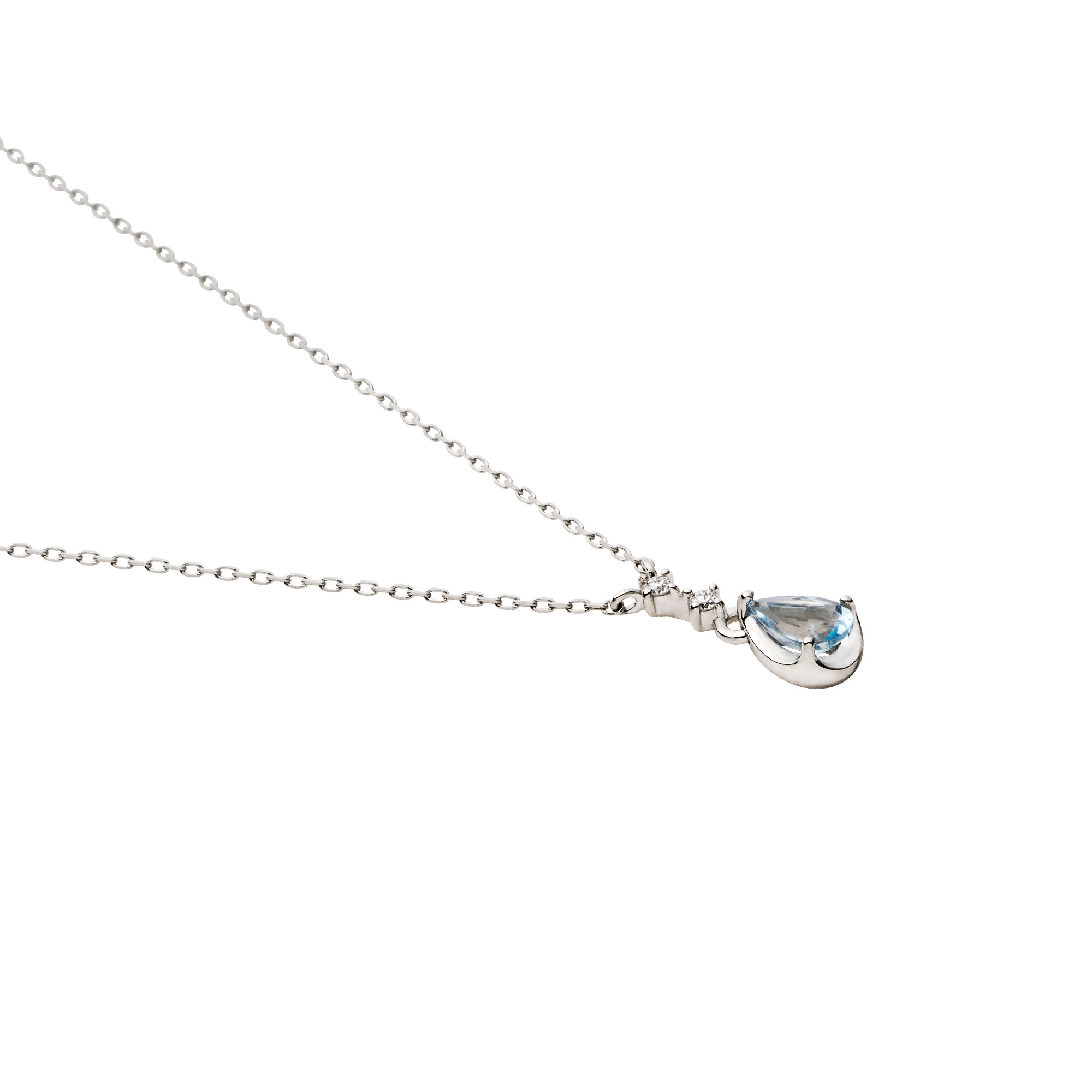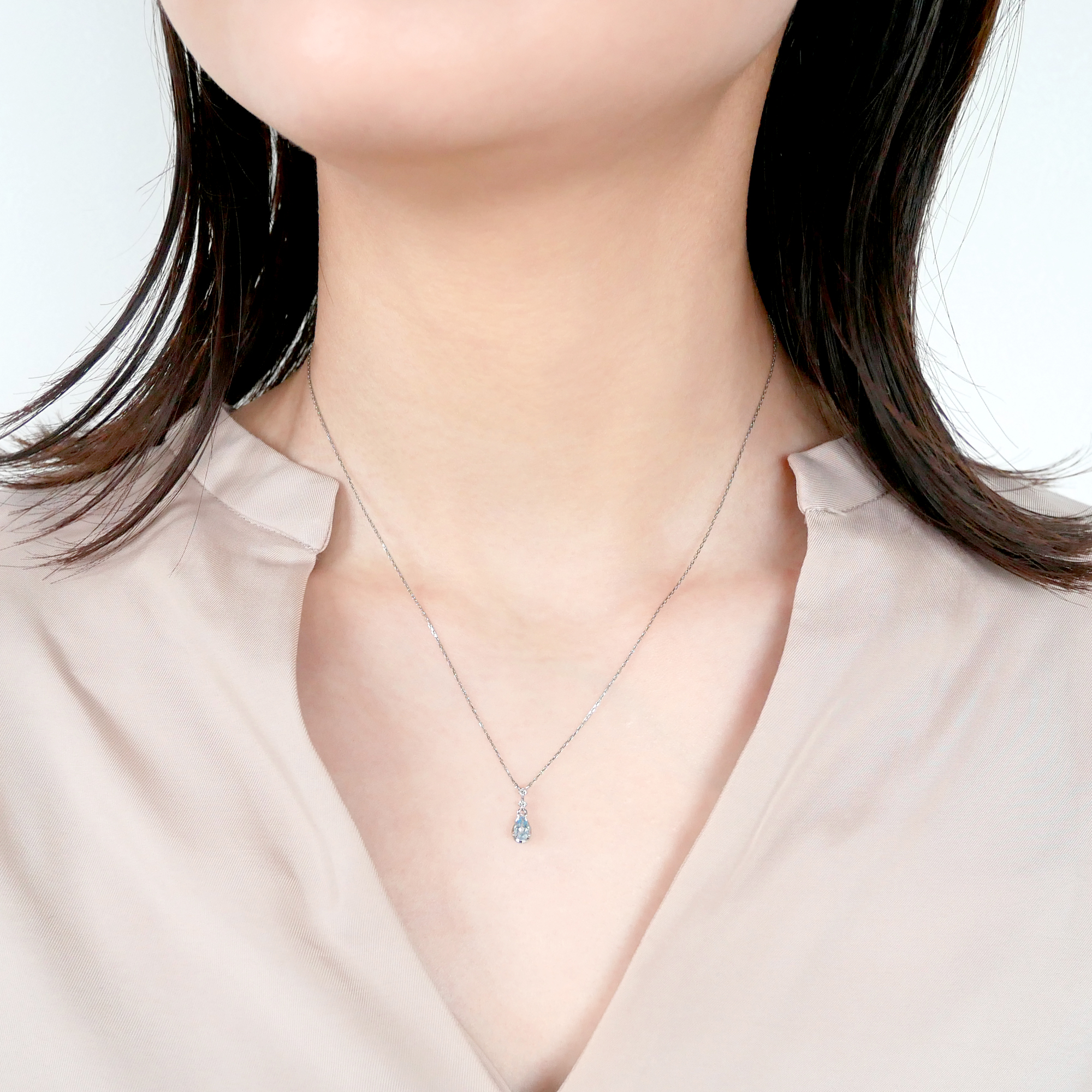 淡いブルーのアクアマリンと、きらめくダイヤモンドがみずみずしい印象のネックレス。