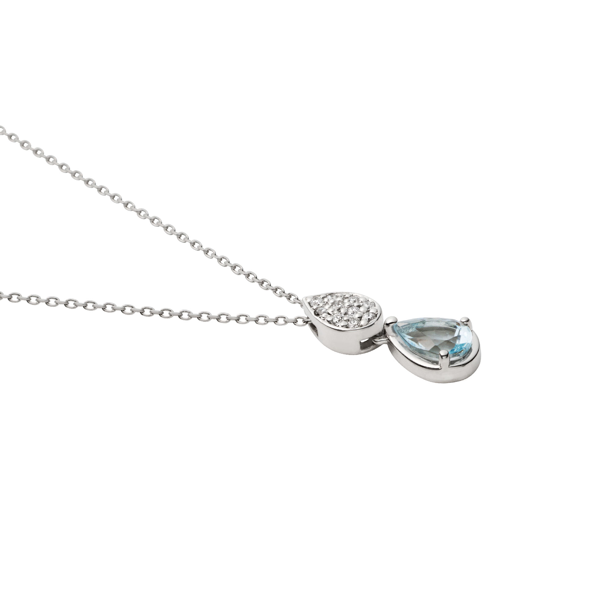 アクアマリンの石言葉は「幸福」。雫は成長や生命力を象徴するモチーフです。