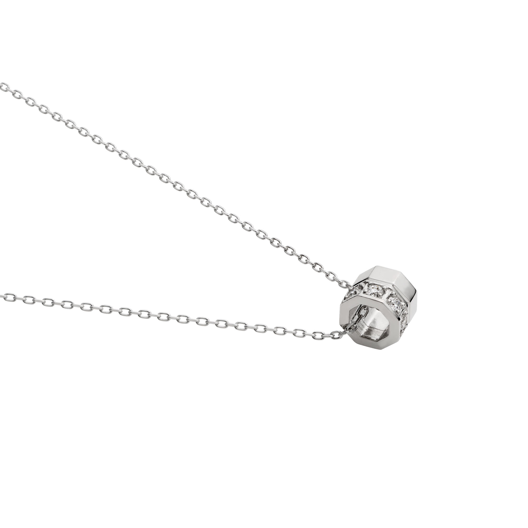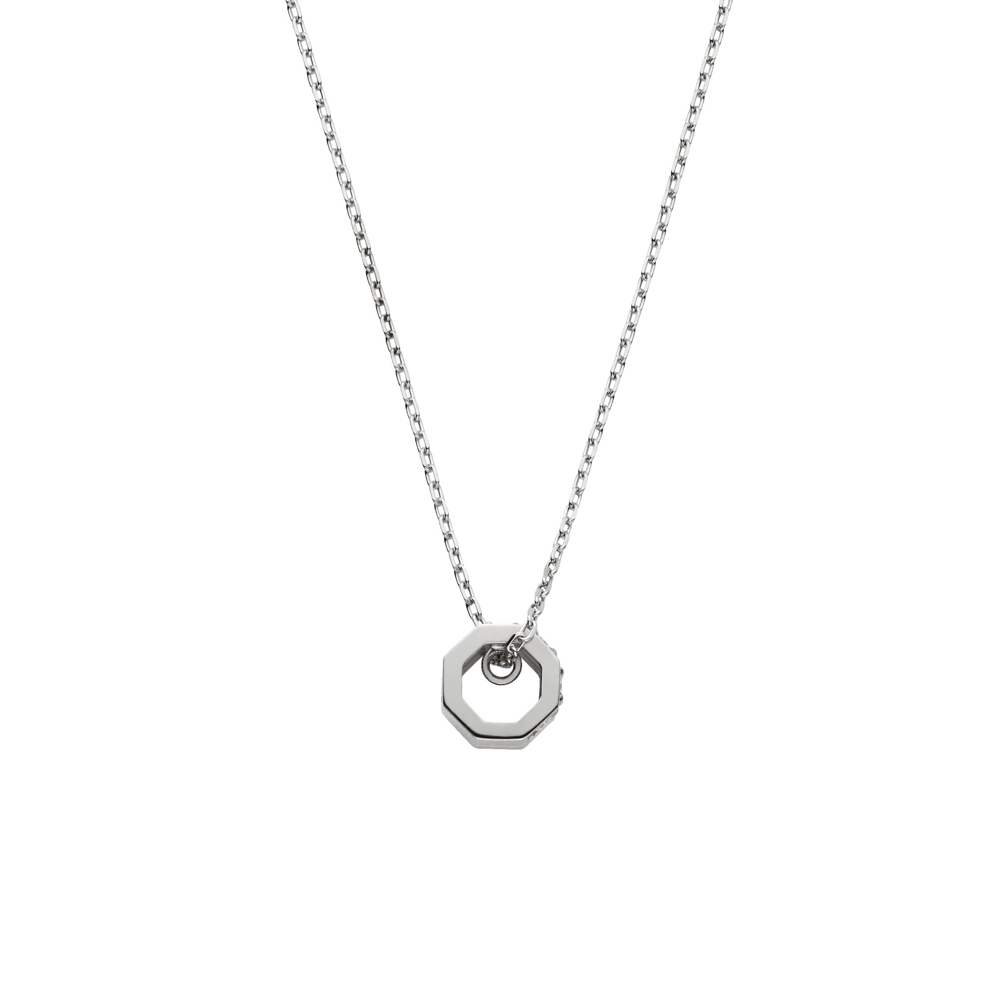 その8角形の面の一つ一つを、きらめくダイヤモンドと艶やかなプラチナで丁寧に仕立てました。