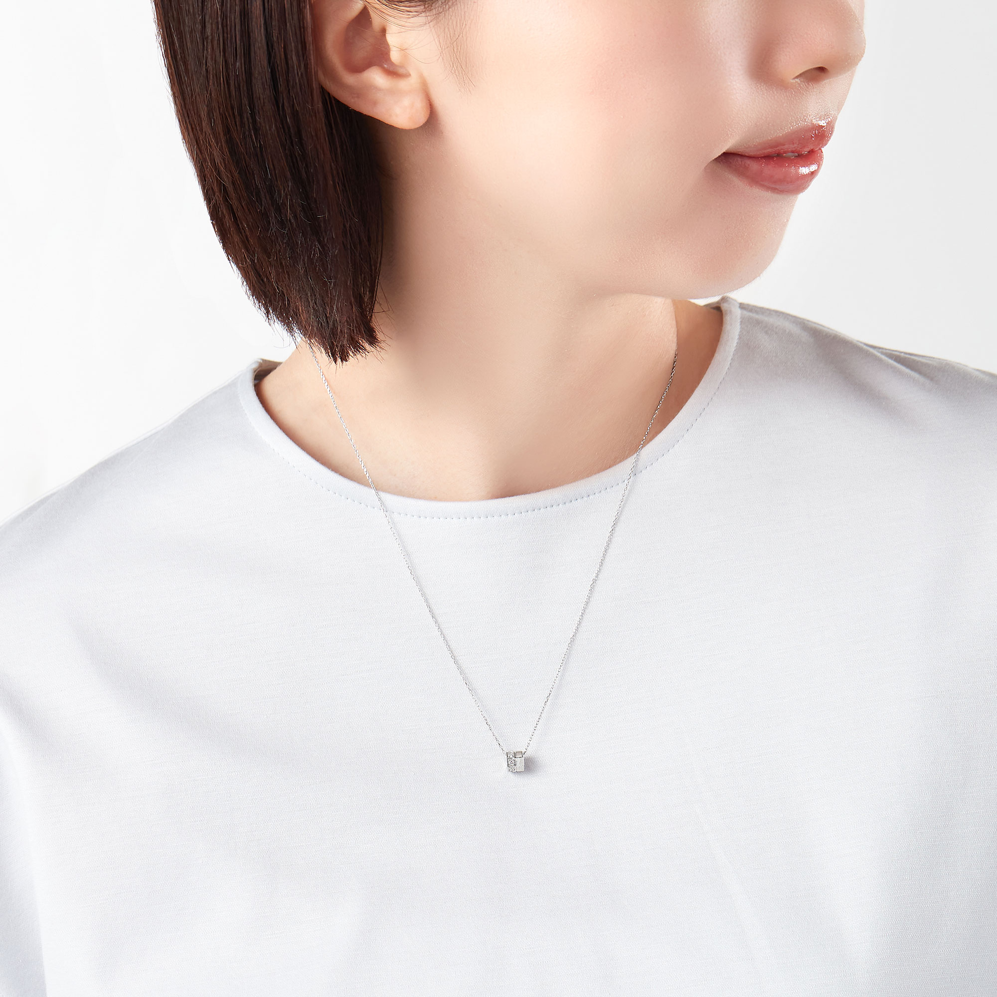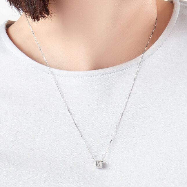 ころんとした小さなプラチナの輪が、胸元に立体感のある輝きをもたらすネックレス。