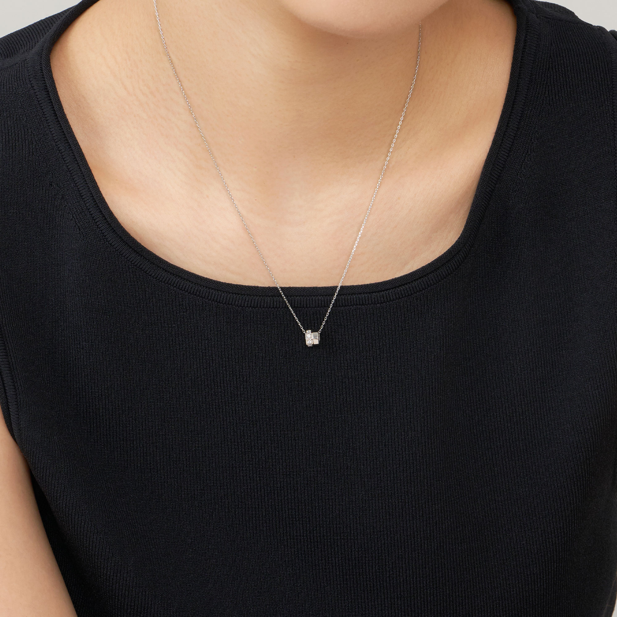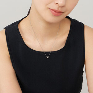 ころんとした小さなプラチナの輪が、胸元に立体感のある輝きをもたらすネックレス。