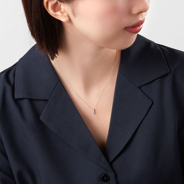 縦長のラインが胸元にすっきりとした知的な表情を演出。