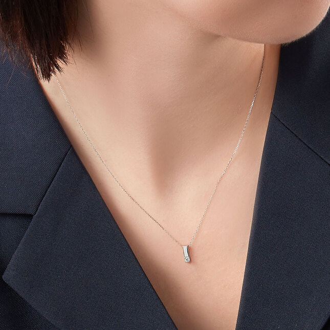 曇りなく磨かれたプラチナとダイヤモンドのコントラストが美しいネックレス。