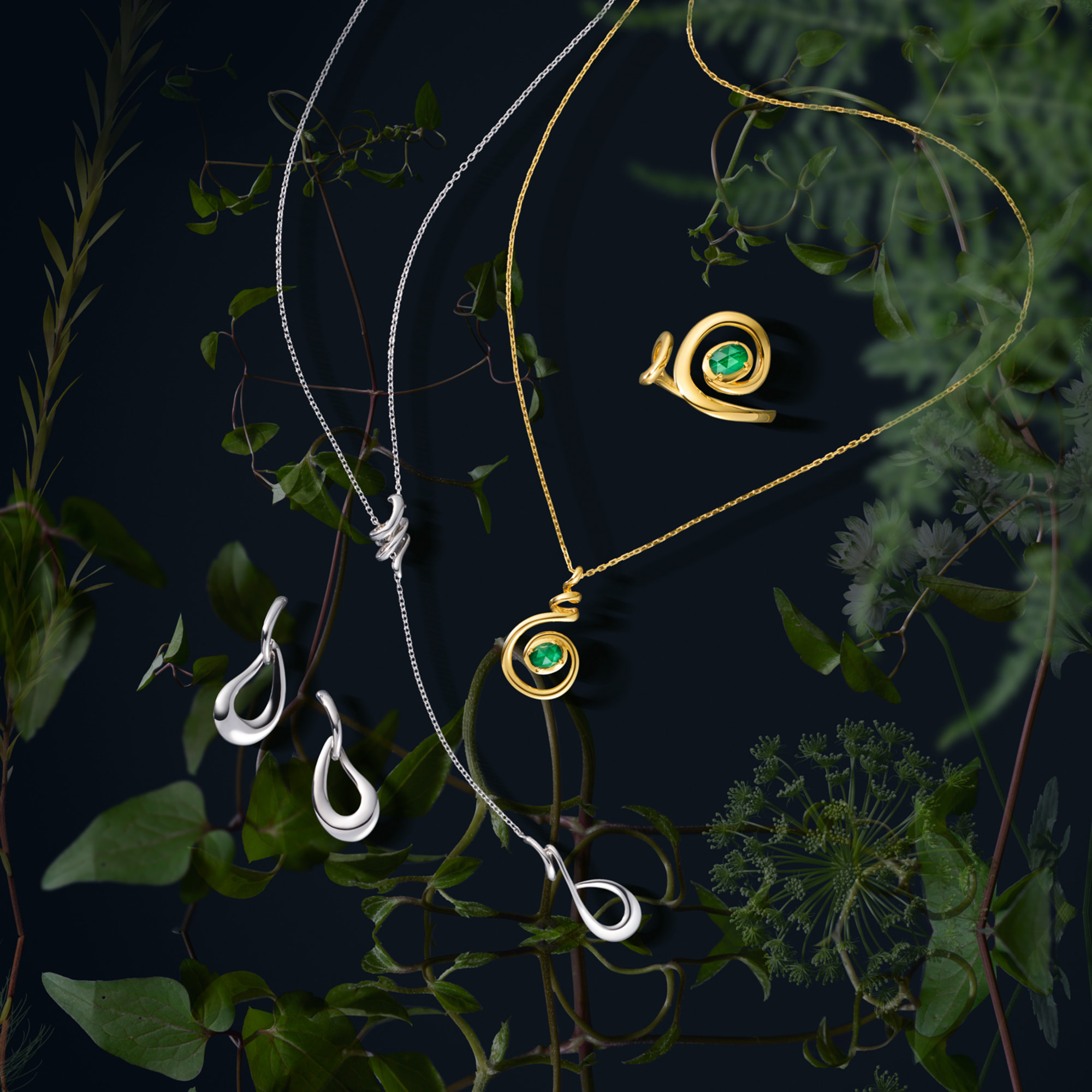 螺旋状に伸びる植物のつるをイメージしたネックレス。