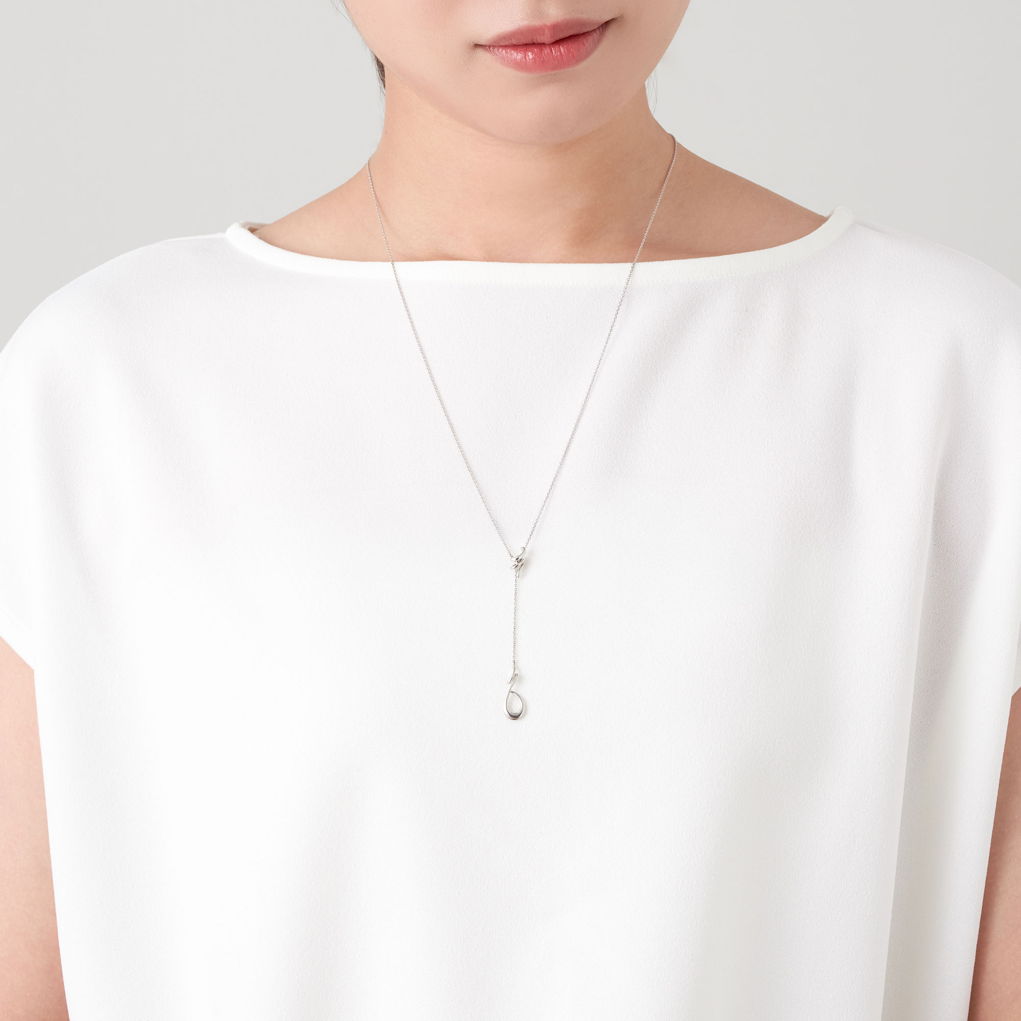 有機的でしなやかなフォルムが、躍動感のある美しさを胸元にまとわせ、白い光沢が美しいプラチナが水分を含んだようなみずみずしさを感じさせてくれます。