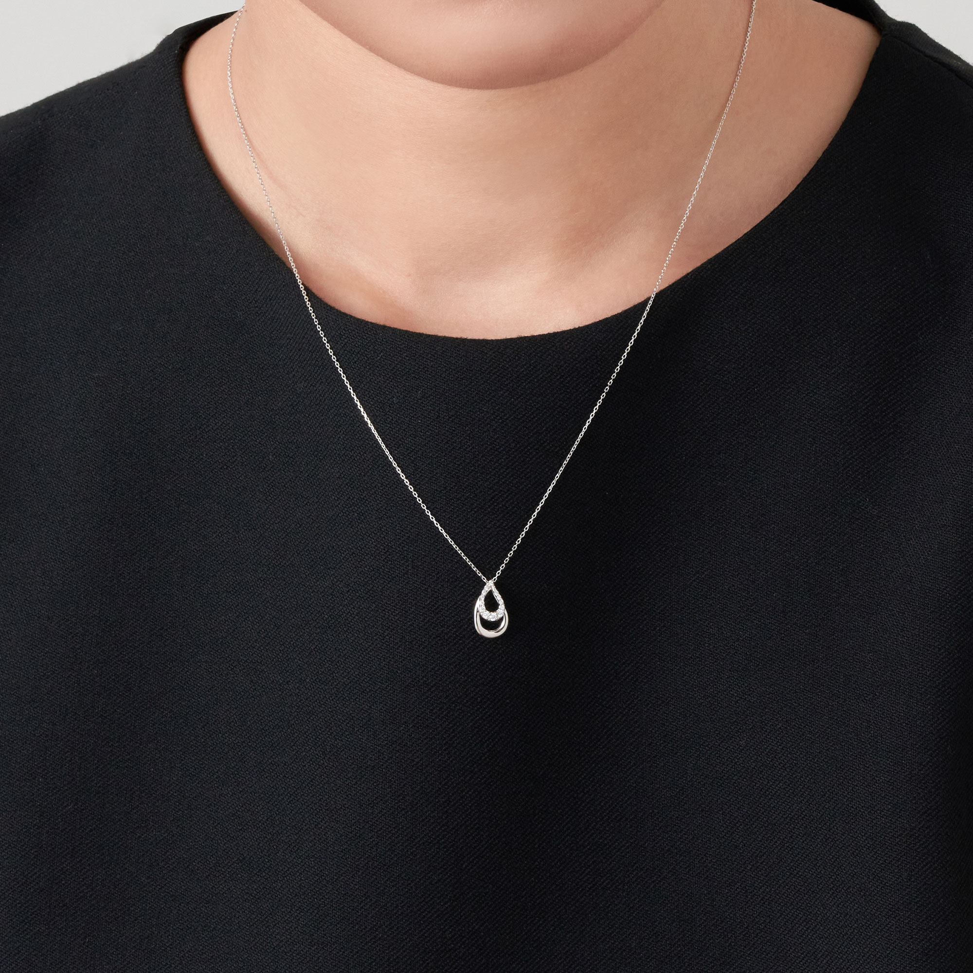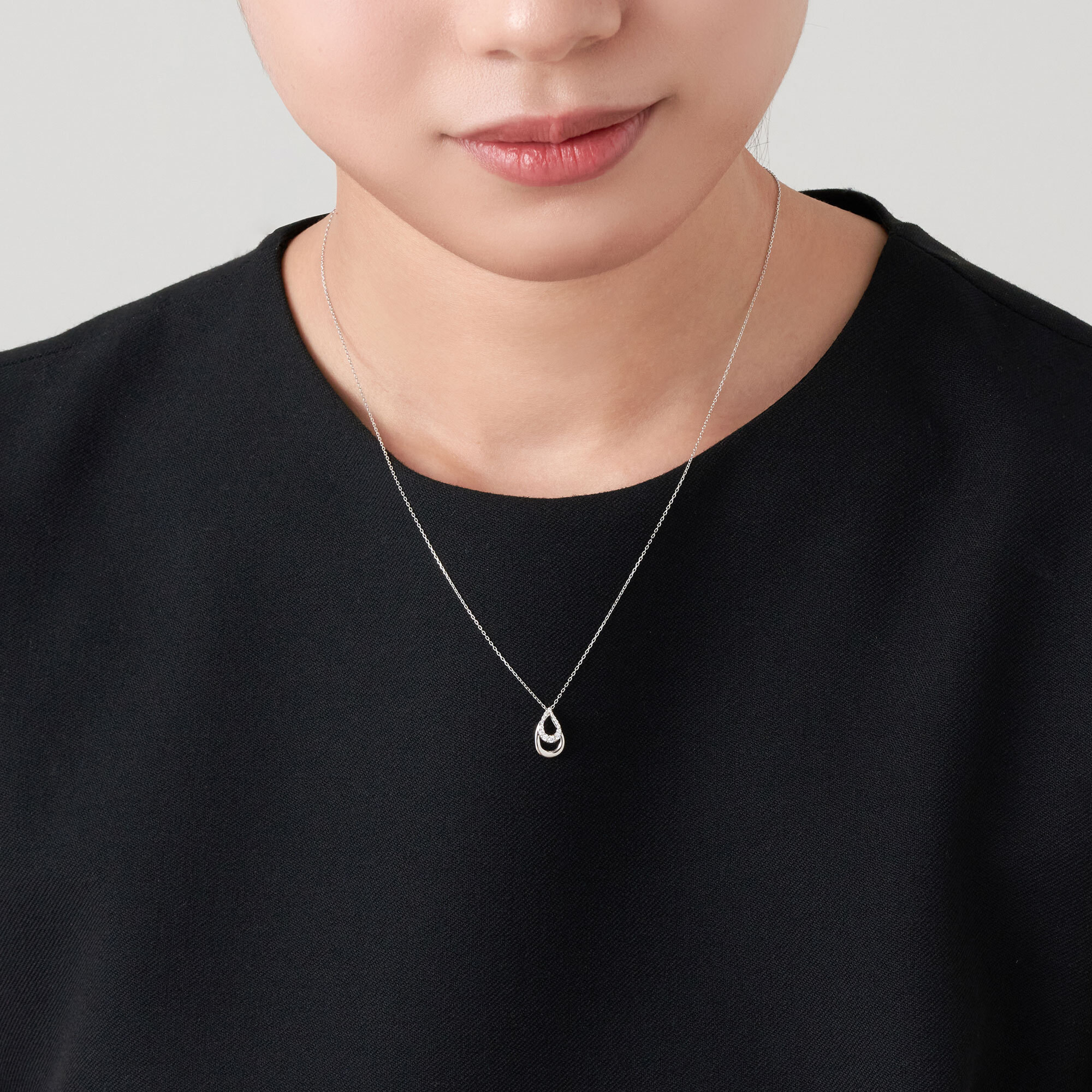 艶やかな地金のラインときらめくダイヤモンドのライン。立体的に重なる二つの曲線が胸元にエレガントな輝きをまとわせます。
