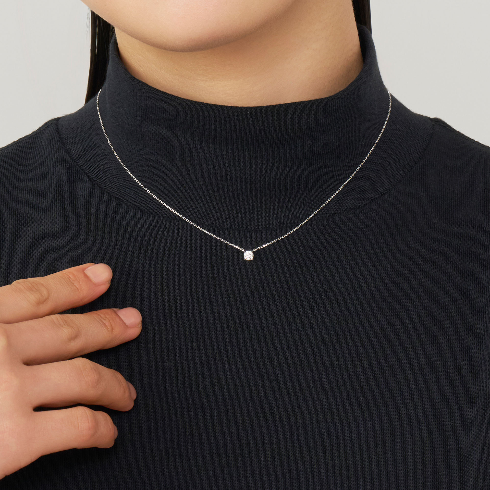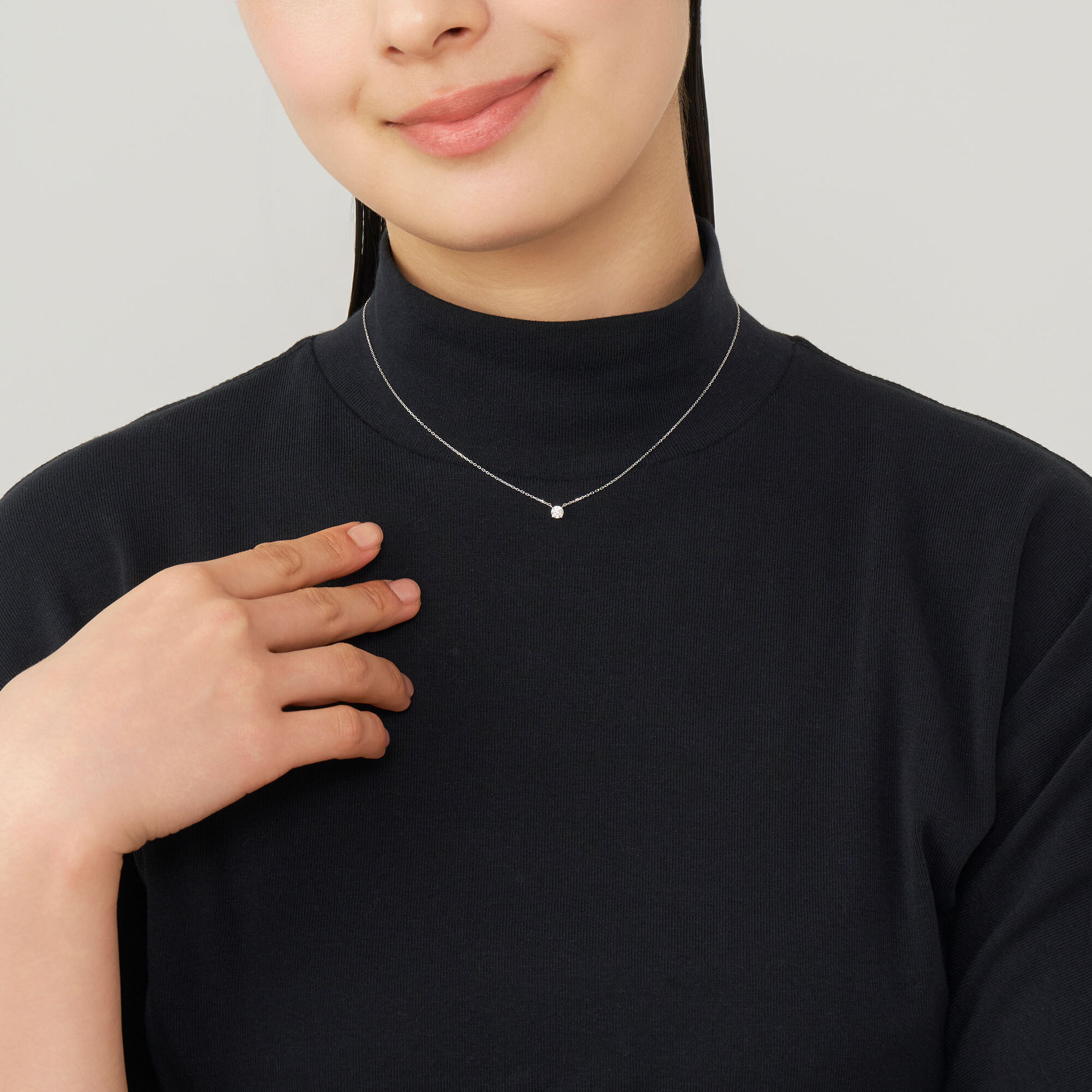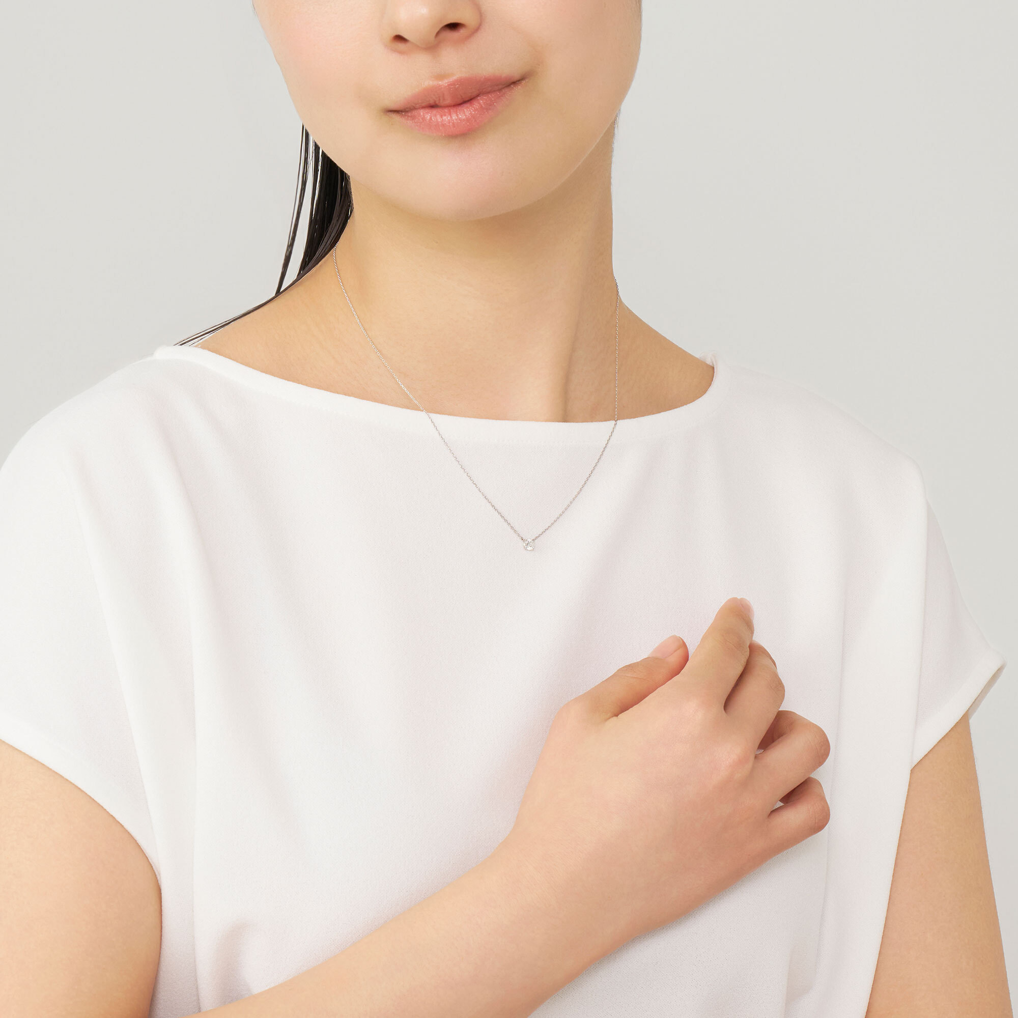 チェーンはダイヤモンドだけが胸元に可憐に浮かび上がる、華奢で控えめなアズキチェーンを使用。