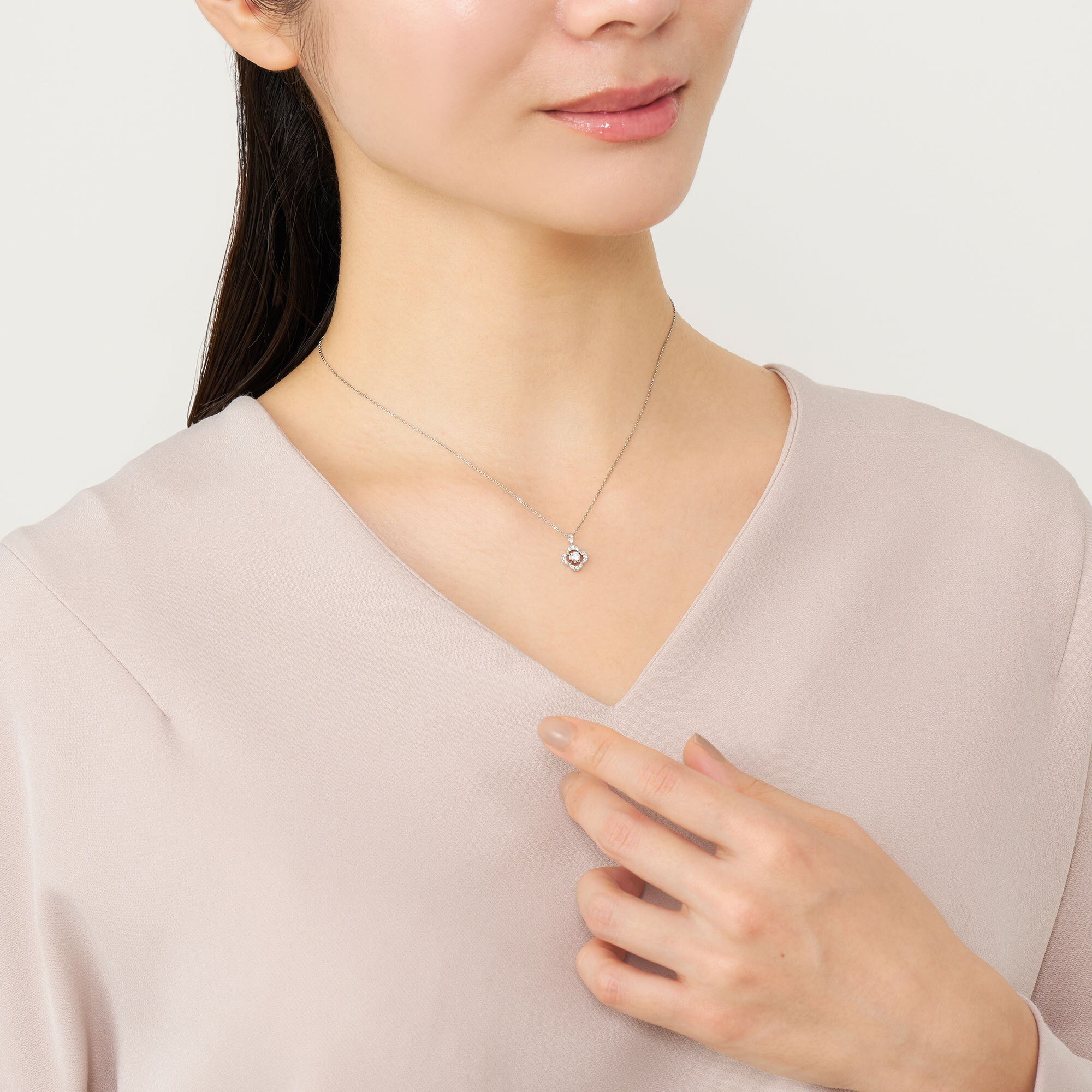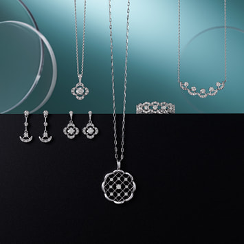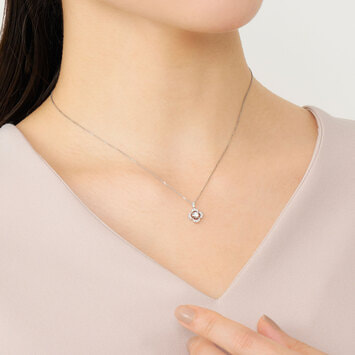 ノーブルな白い光で彩られたフラワーモチーフが、胸元をエレガントに演出するネックレス。