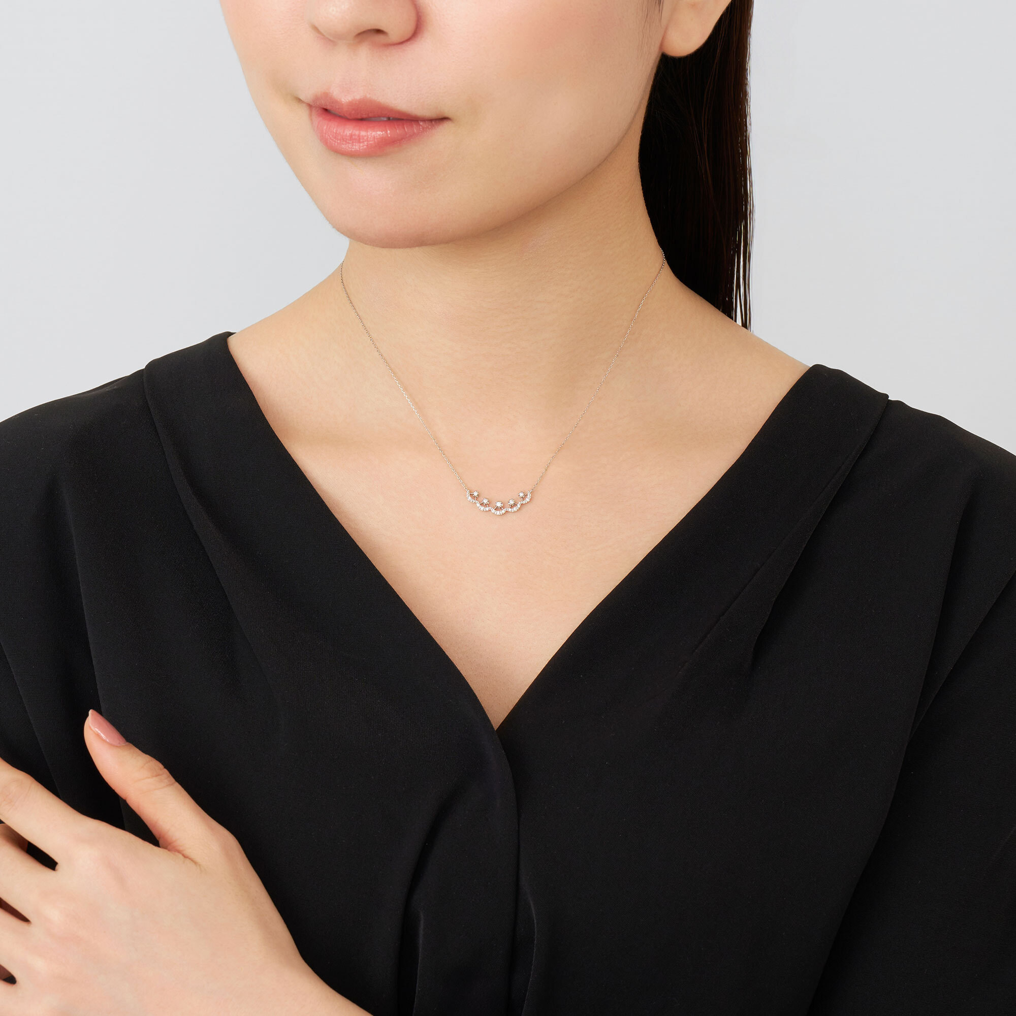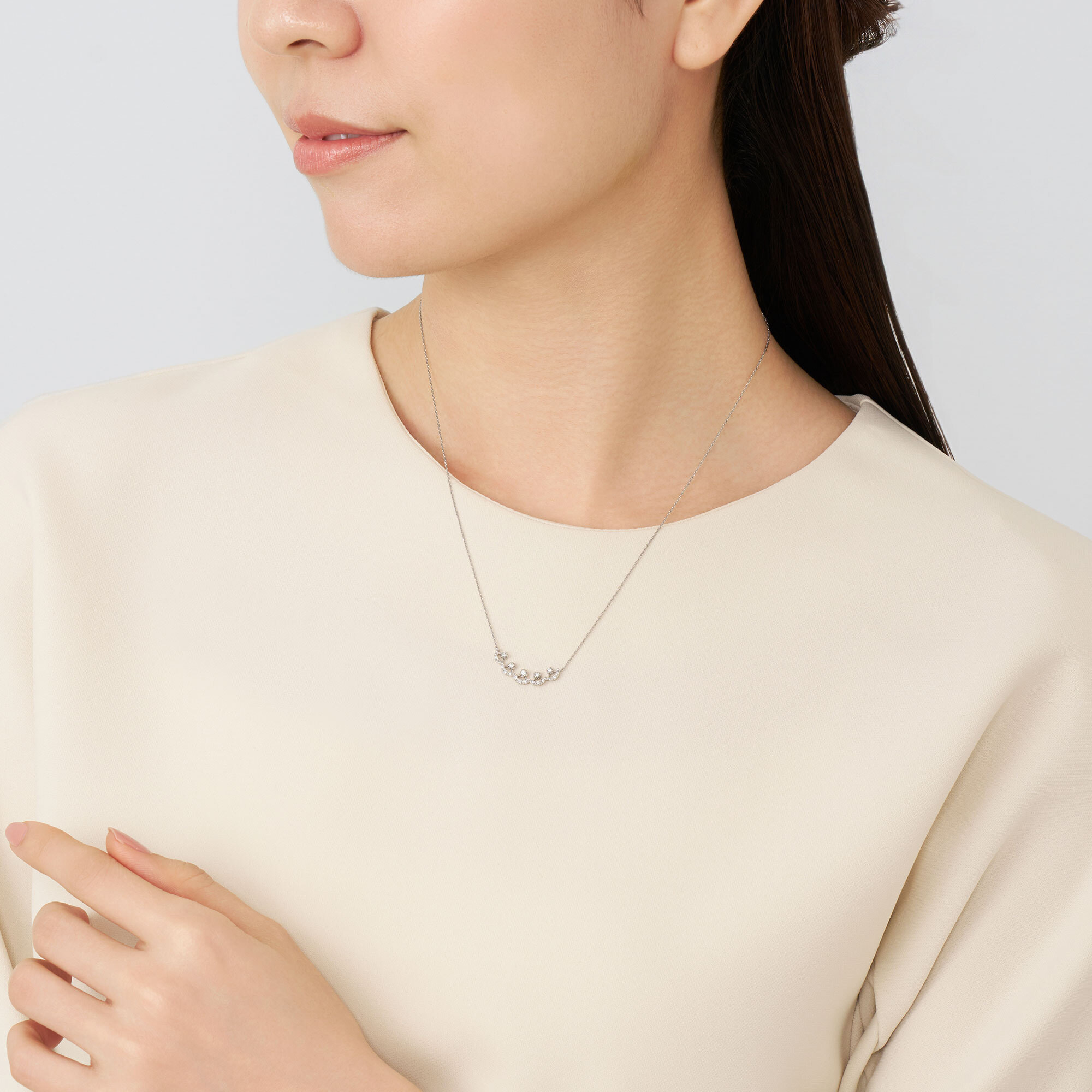 柔らかなカーブを描くシルエットが、デコルテを女性らしくエレガントに演出してくれます。