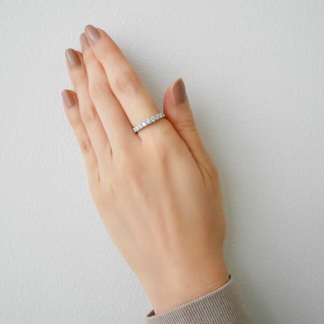 繊細なきらめきを感じさせるハーフエタニティリング。