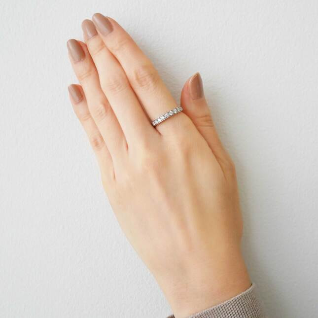 ダイヤモンド本来の透明感と、繊細なきらめきが魅力的なハーフエタニティリング。