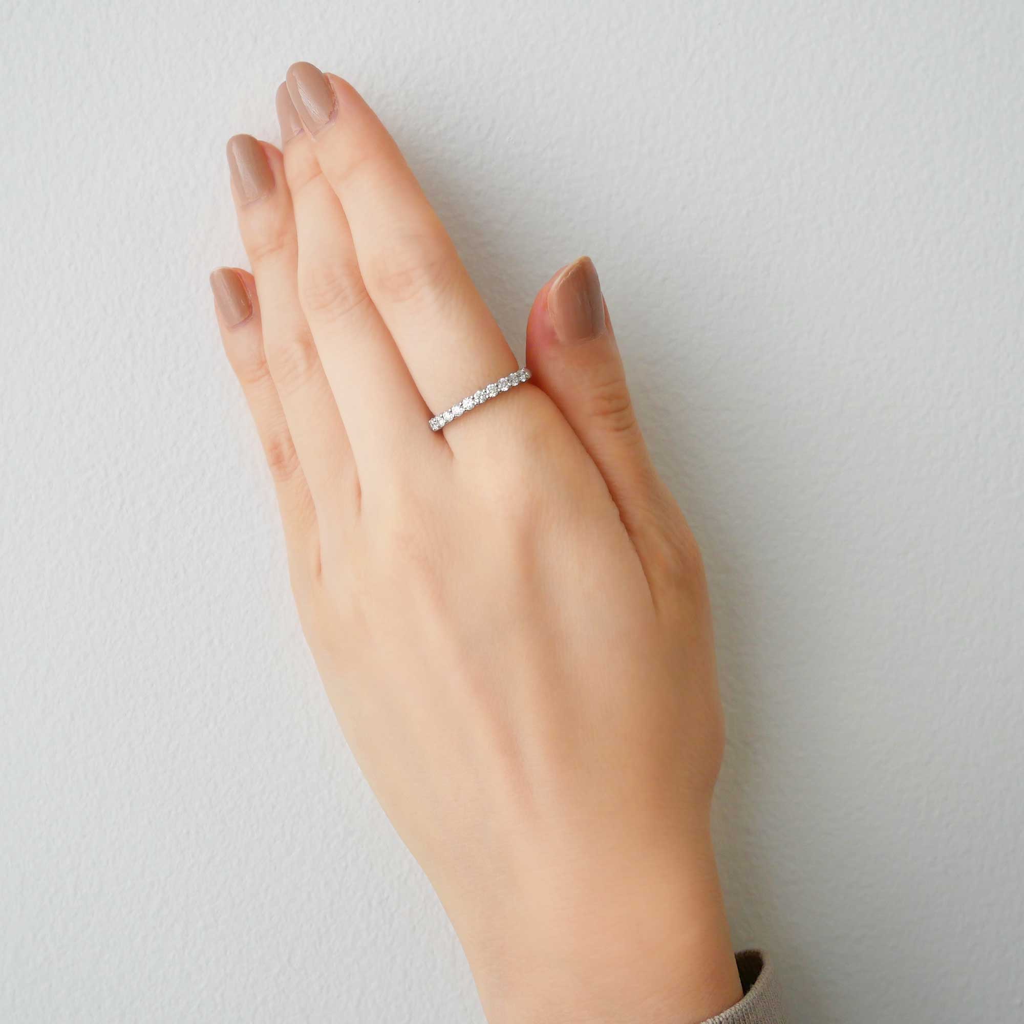 ダイヤモンド本来の透明感と、繊細なきらめきが魅力的なハーフエタニティリング。