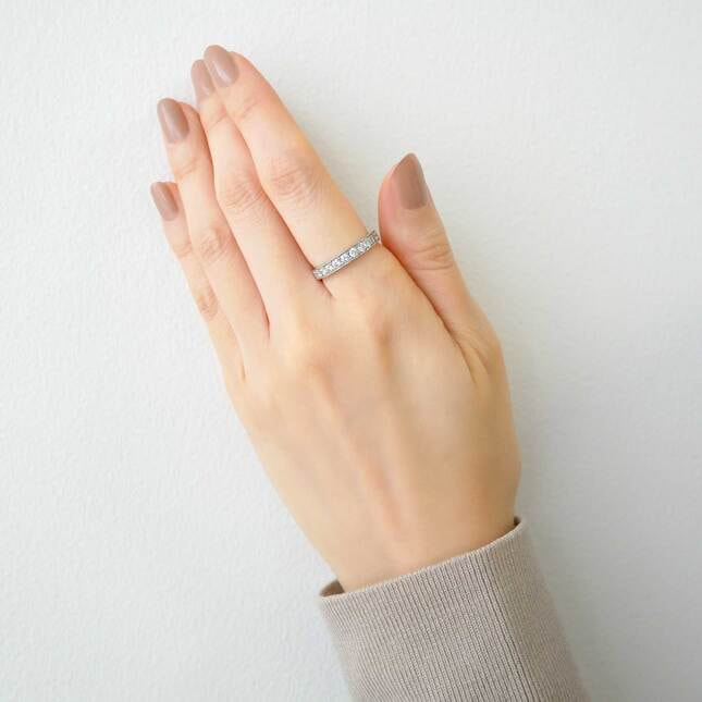 ダイヤモンド本来の透明感と、繊細なきらめきが魅力的なハーフエタニティリング。
