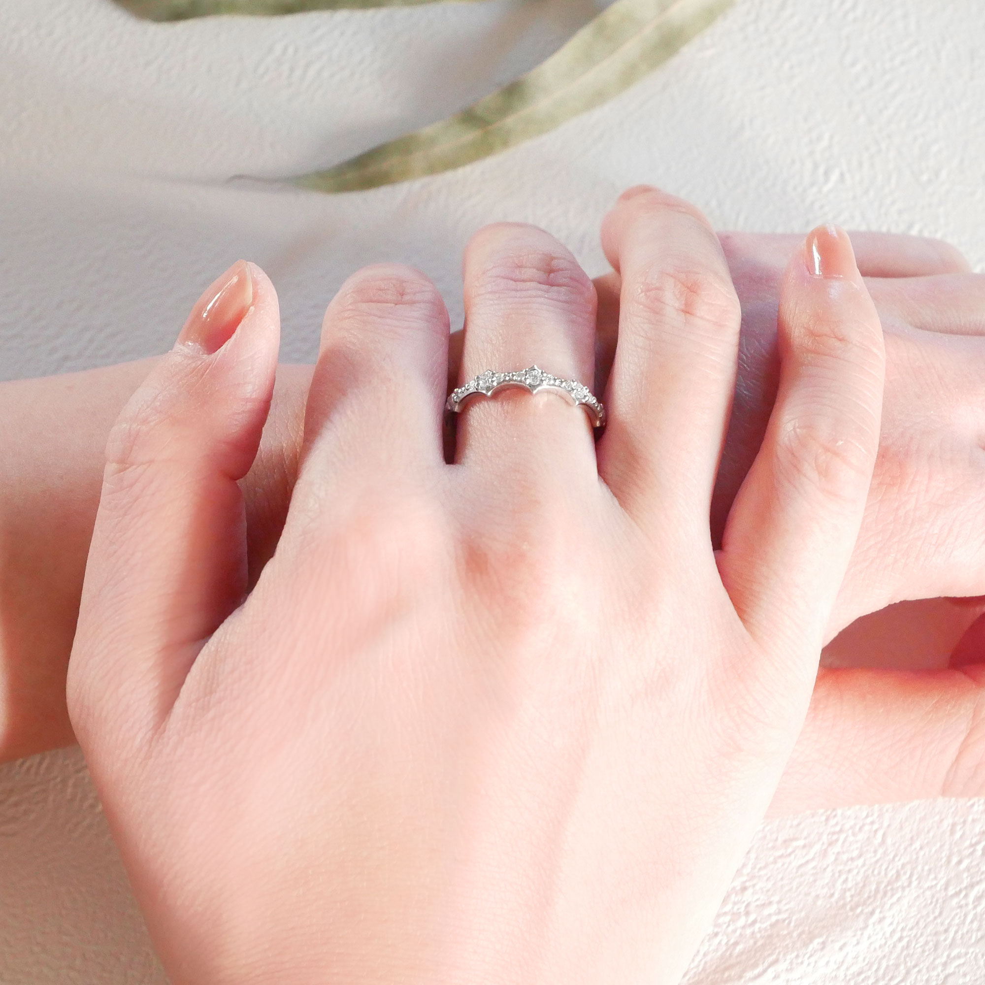 並んだダイヤモンドは、吸い上げた水分を湛えた瑞々しい植物の様に、透明感を感じる輝きを添えます。