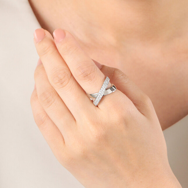 アルファベットの「X」を象った、モダンでスタイリッシュなデザインのリングです。