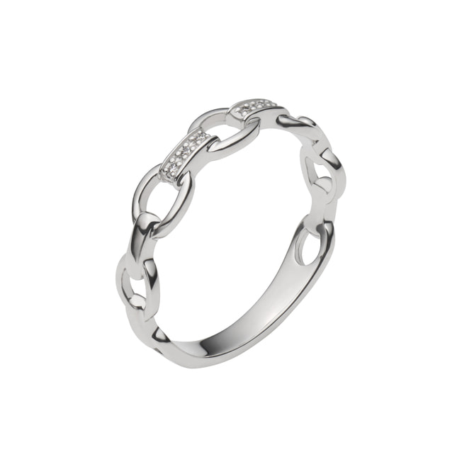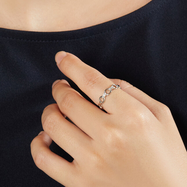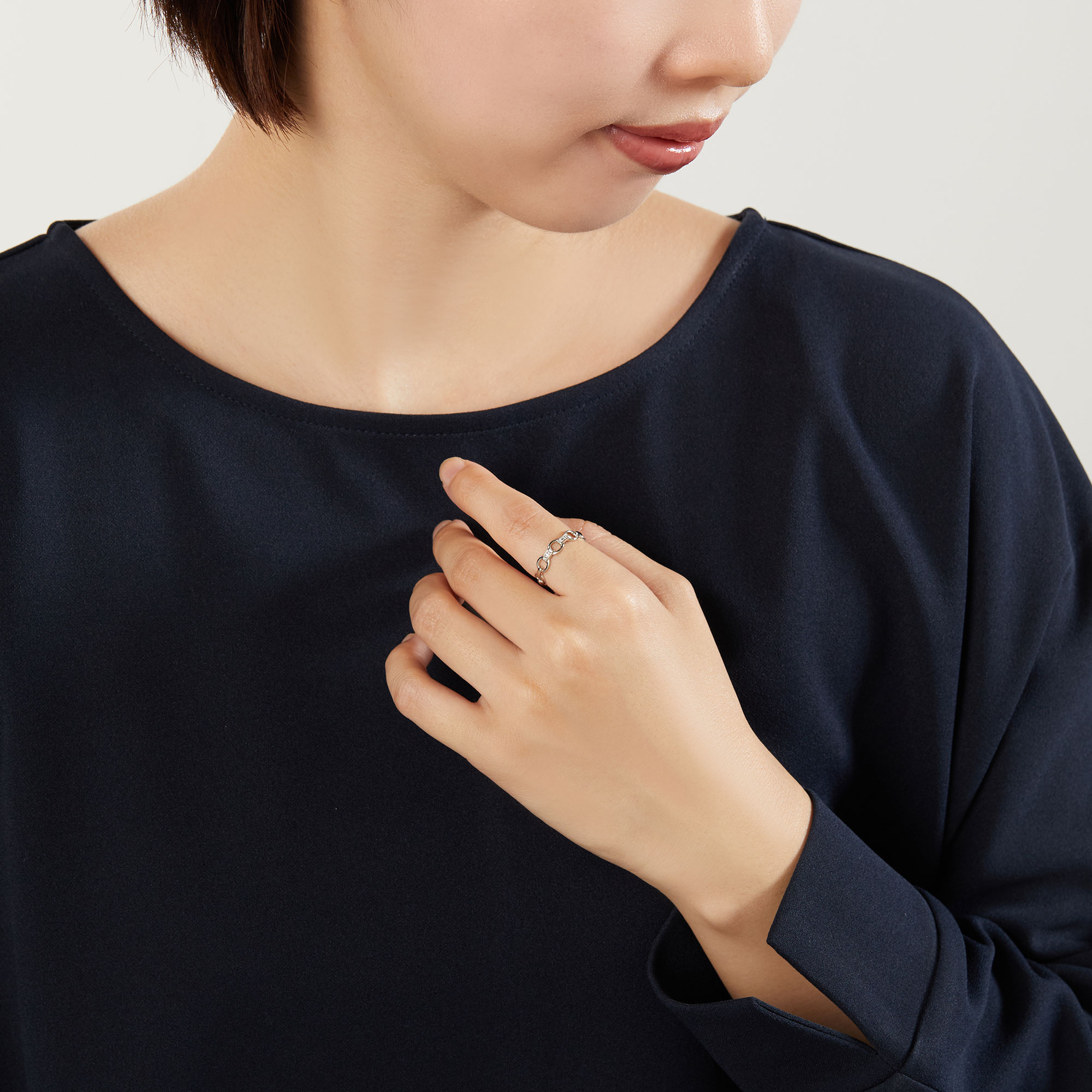 まるでチェーンをそのまま指にまとったかのようなモダンな印象のリング。
