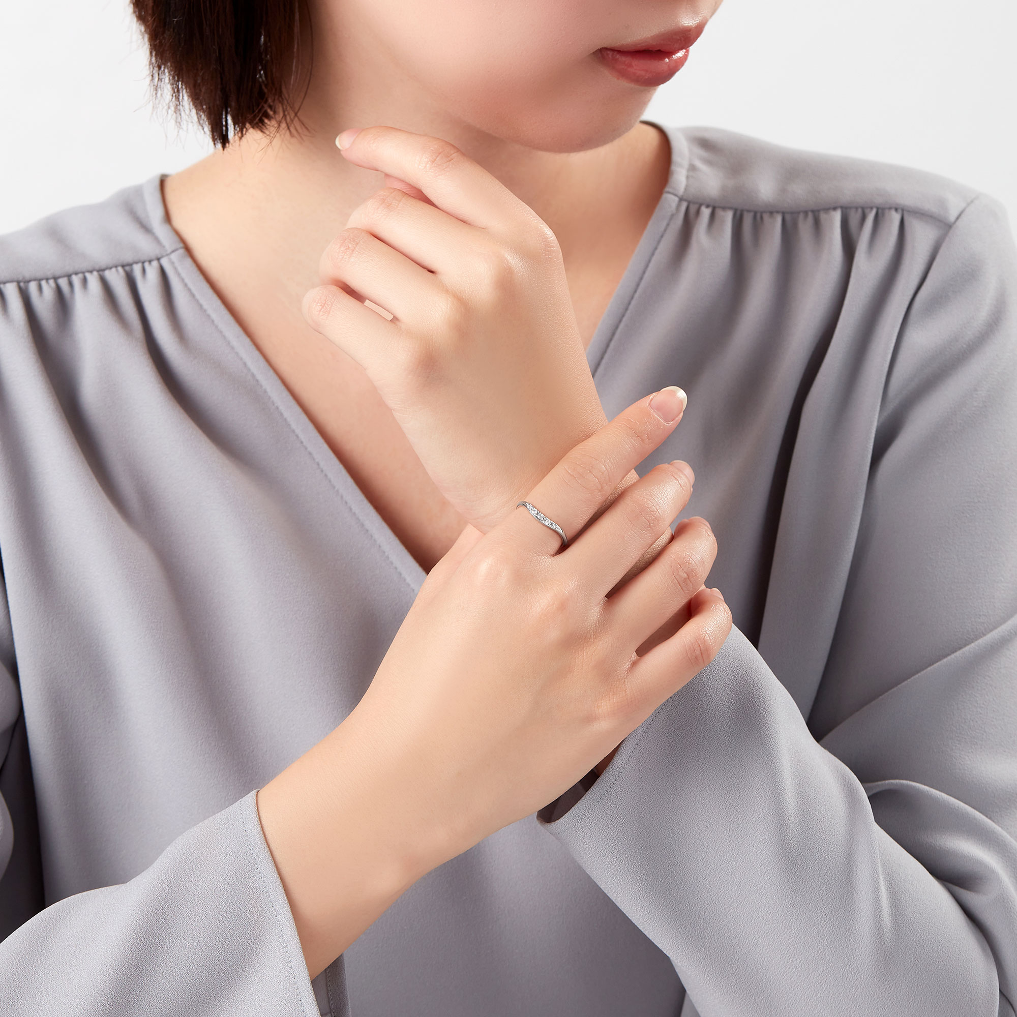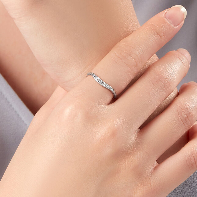 柔らかなカーブを描くラインにダイヤモンドの輝きがエレガントなリング。