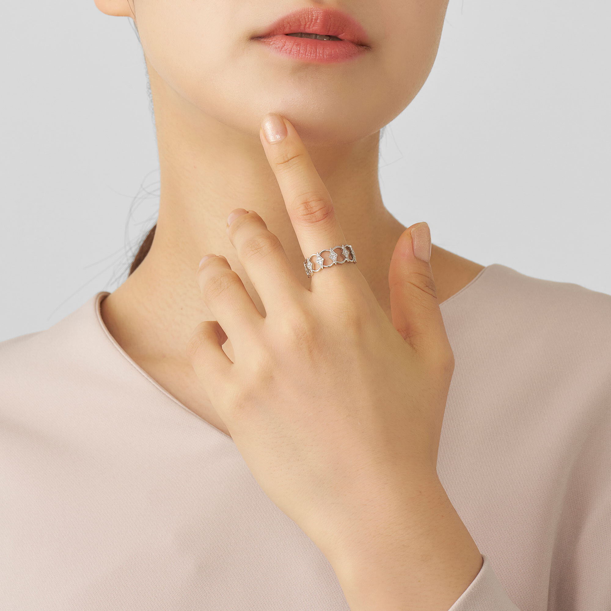 光を繋ぐプラチナの曲線がどことなく優しげな表情をプラスし、華やかになりすぎず上品な印象に。