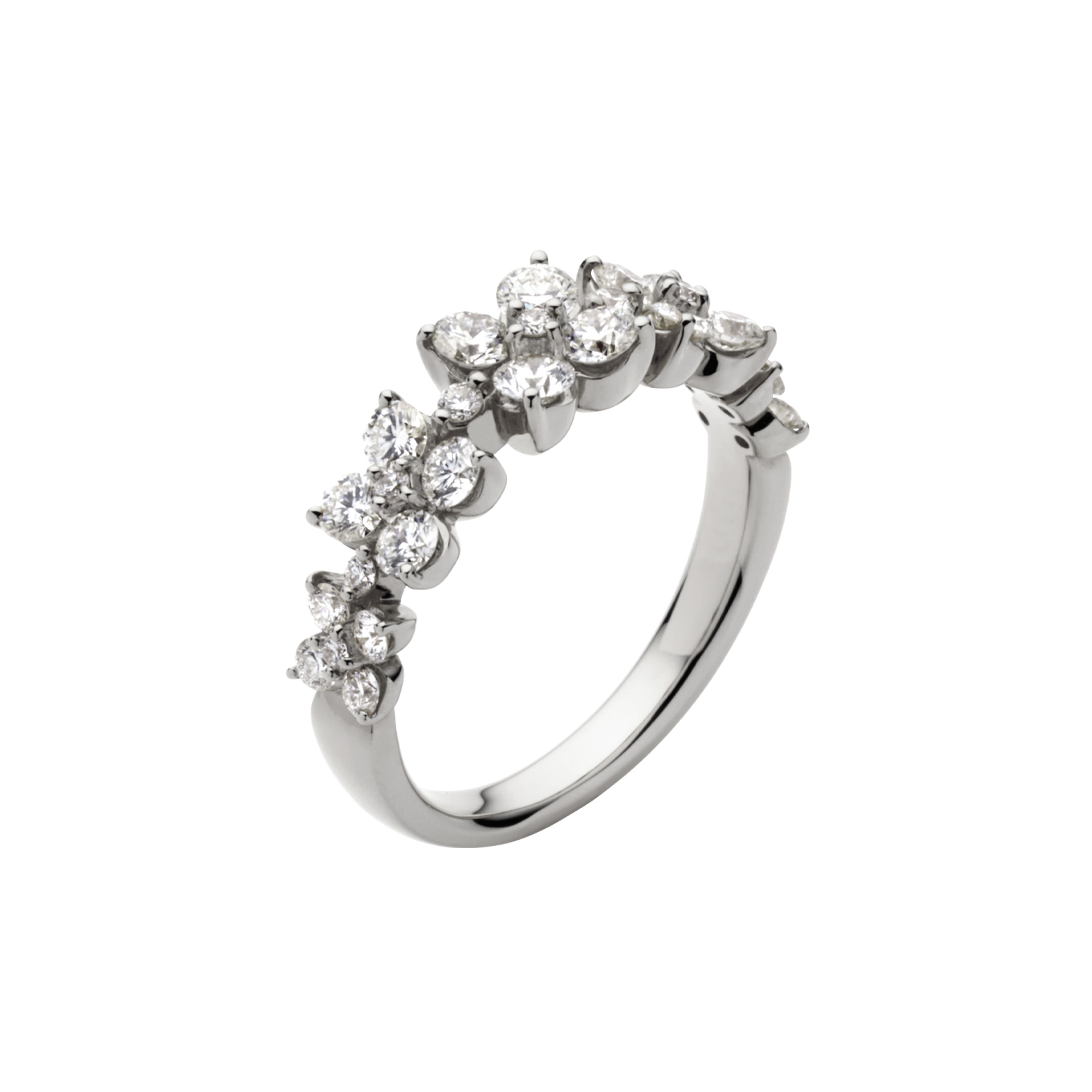 可憐な印象のモチーフながらも、量感のあるプラチナとダイヤモンドのまばゆい輝きで、大人に相応しい上品さと洗練を備えます。