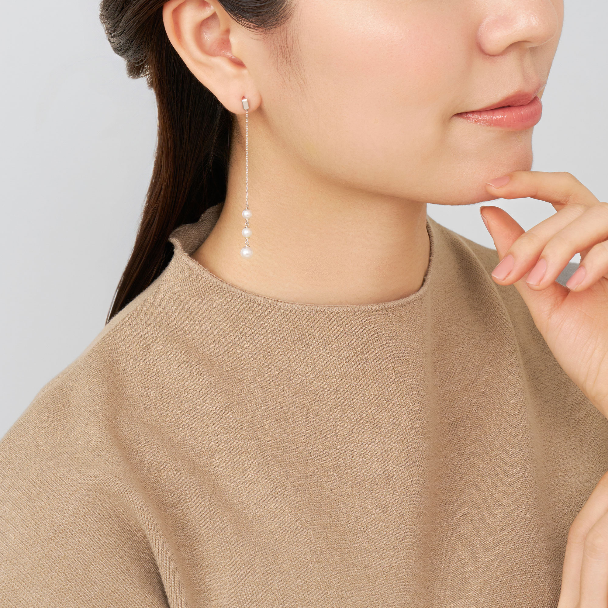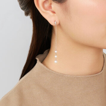 零れ落ちる水滴の瑞々しさをイメージさせる3粒のパールが上品でまろやかな輝き。