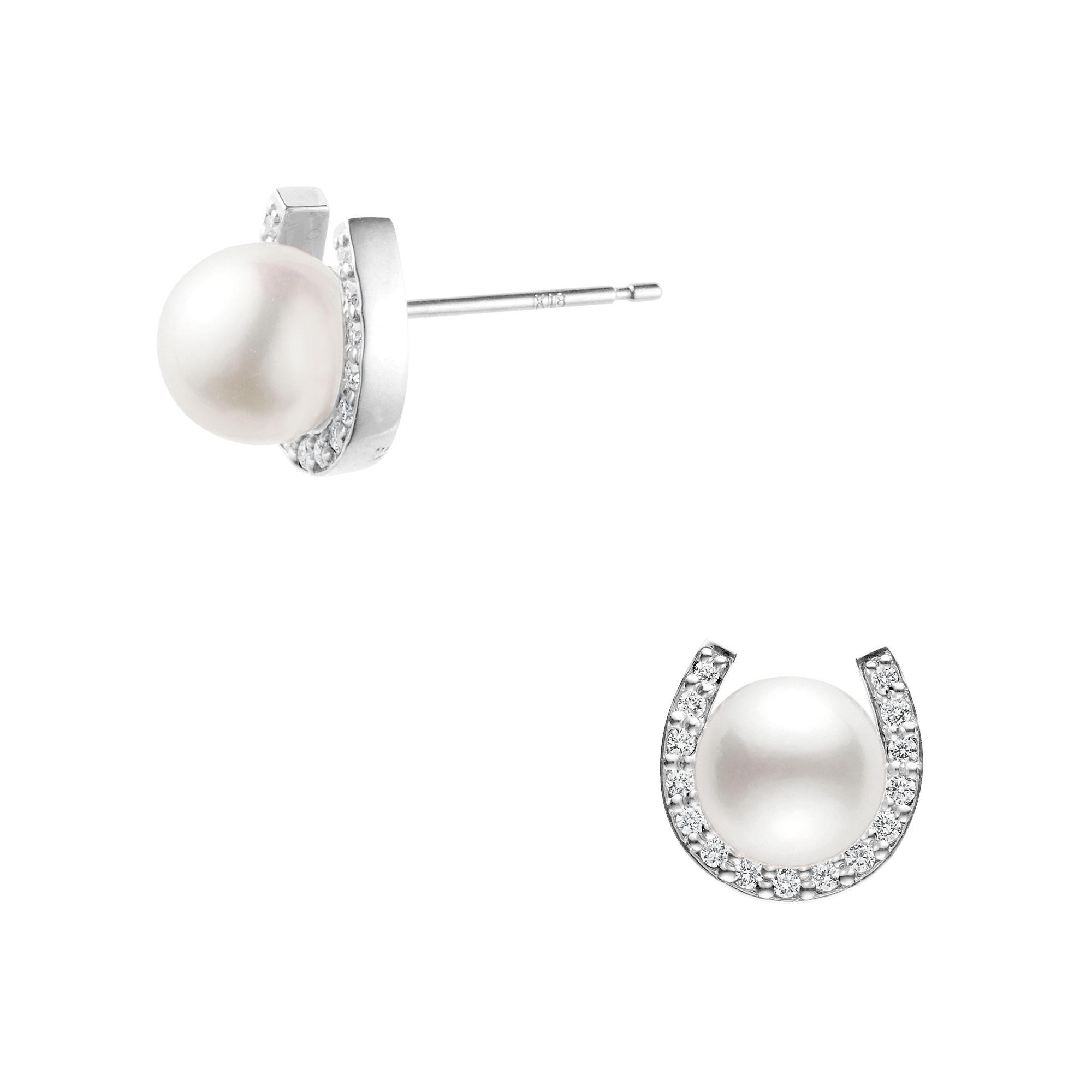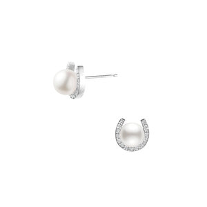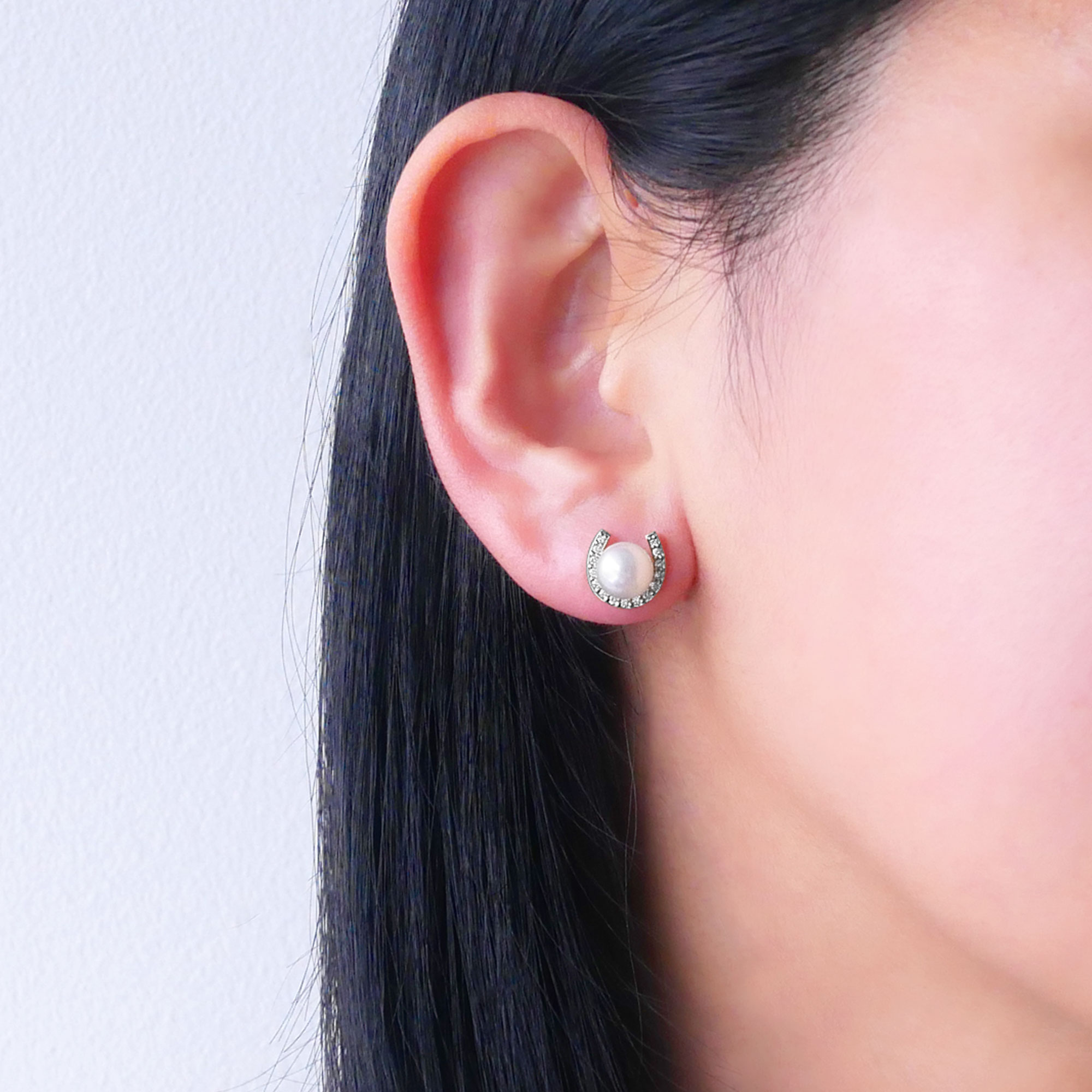 『呼び込んだ幸せを逃さない』と言われるホースシュー(馬蹄)モチーフに、そっと艶やかなアコヤパールが抱えられているかのような、幸福感あふれるピアス。