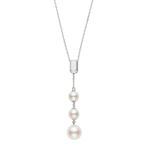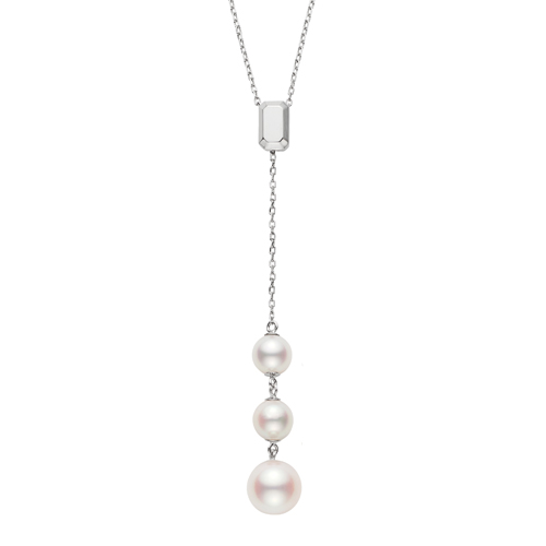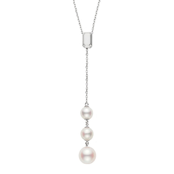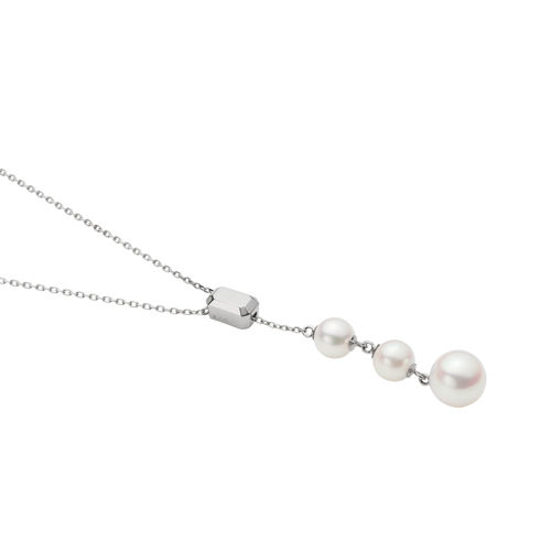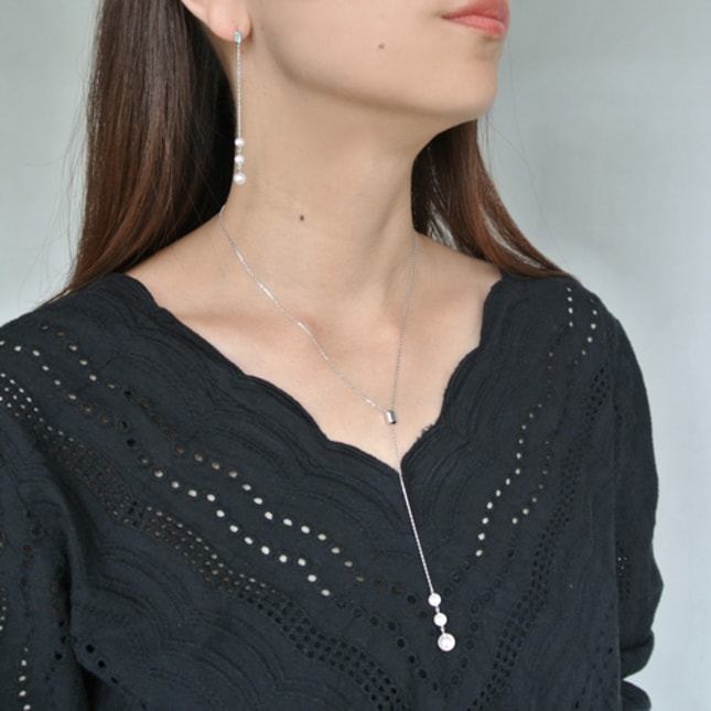 揺れるパールをスライドさせるとY字のシルエットが変化し、印象を変えてお楽しみいただけるラブルネックレス。