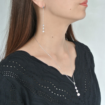 零れ落ちる水滴の瑞々しさをイメージさせる3粒のパールが上品でまろやかな輝き。
