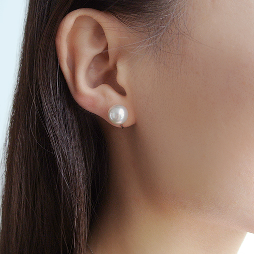 耳たぶから零れ落ちそうな、シンプルな大粒パールのイヤリング。