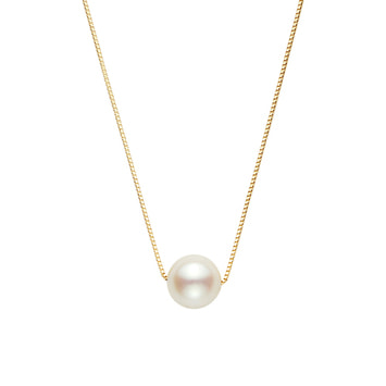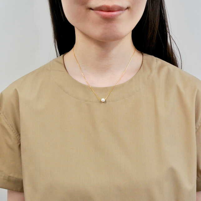 大粒のアコヤパールのまろやかな輝きとイエローゴールドのツヤ感とのハーモニーが、胸元をエレガントに演出します。