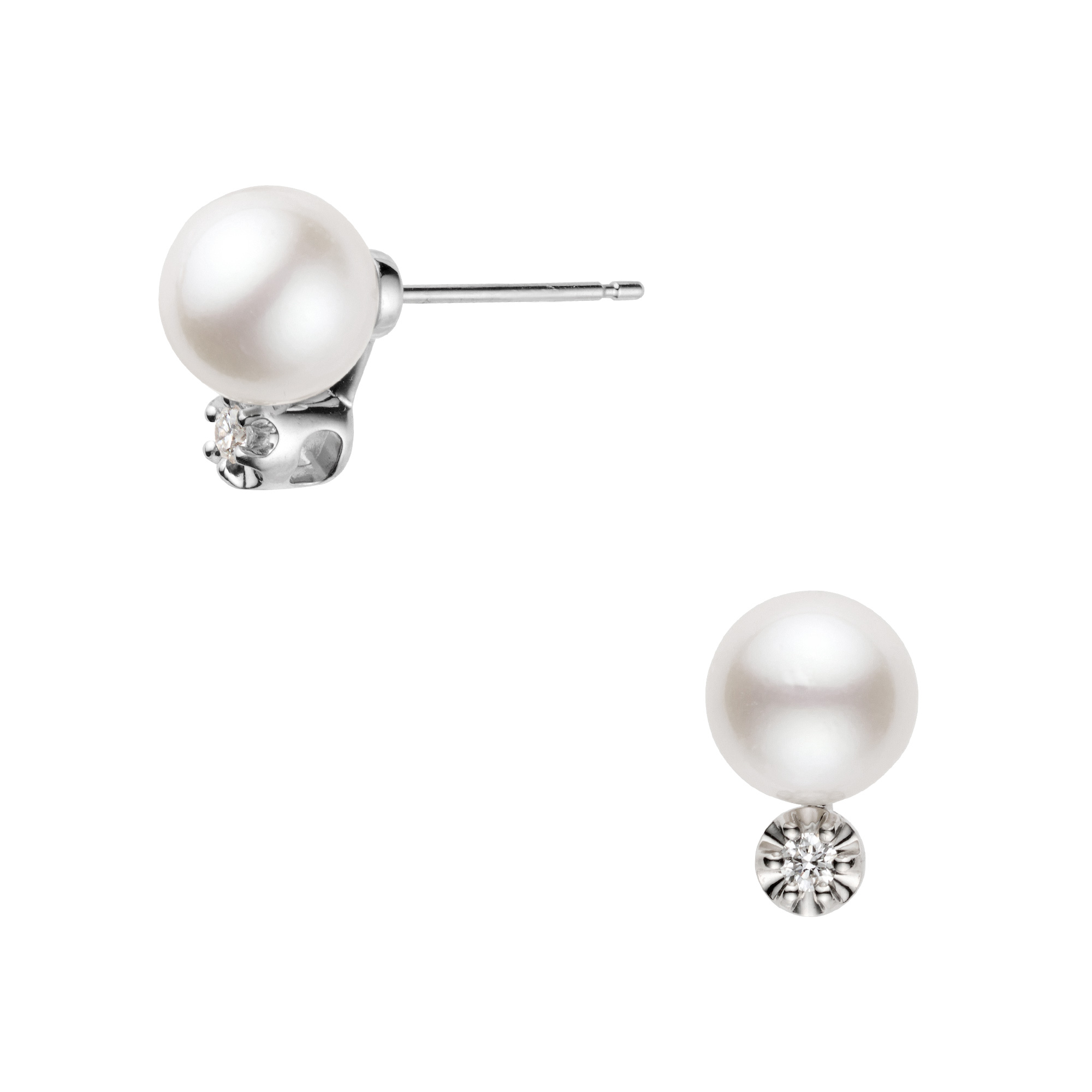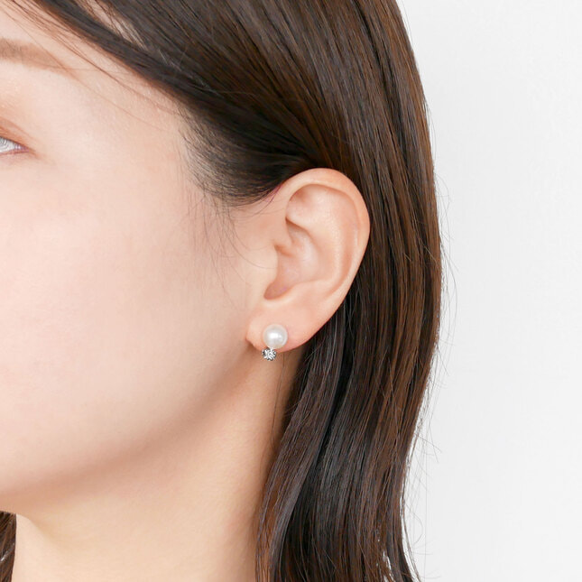 ダイヤモンドのきらめきがエレガントな表情をまとわせつつ、アコヤパールの存在感を引き立てます。