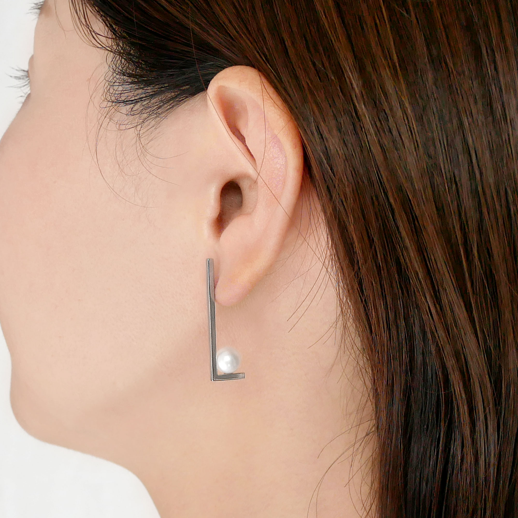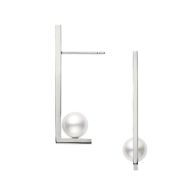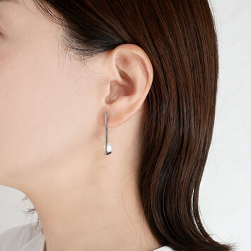 柔らかなアコヤパールの質感と、細くフラットなプラチナのラインとのコントラストで、スタイリッシュな雰囲気の仕上がりに。