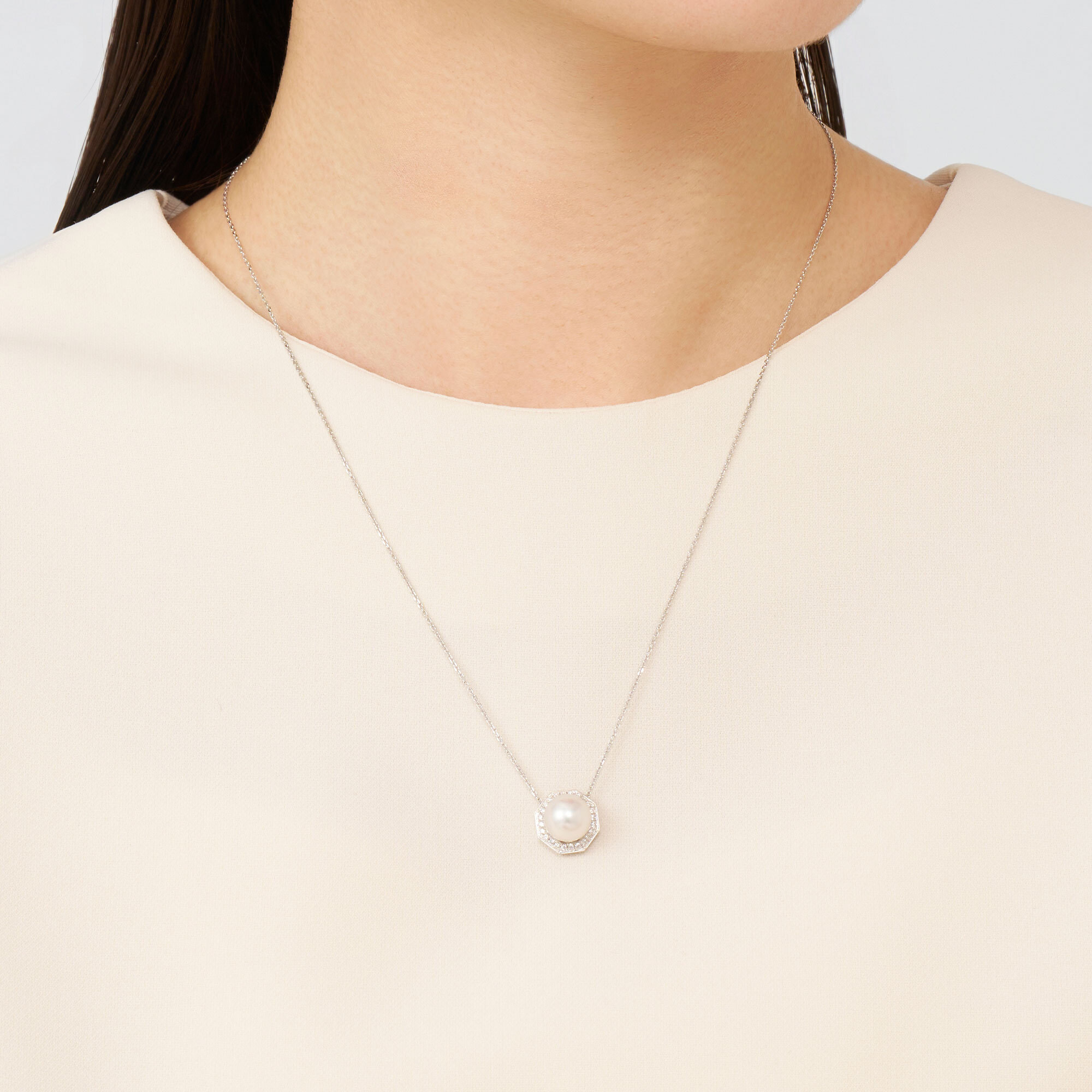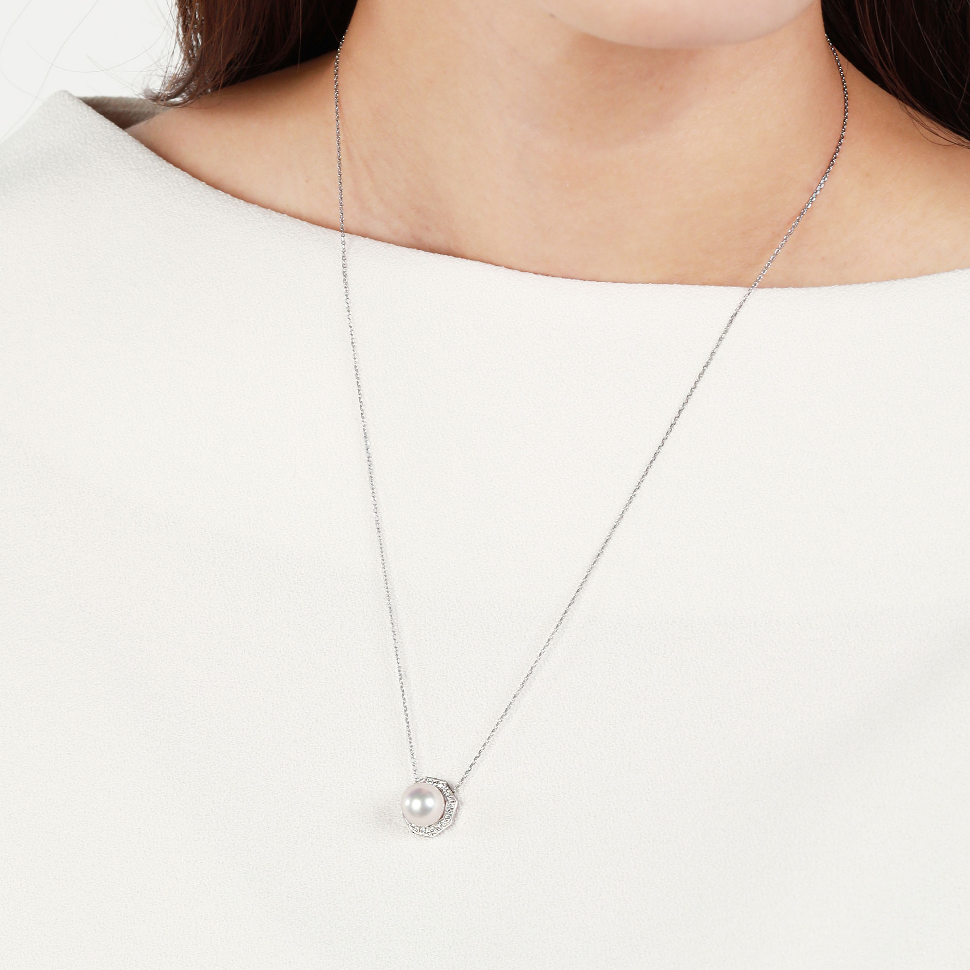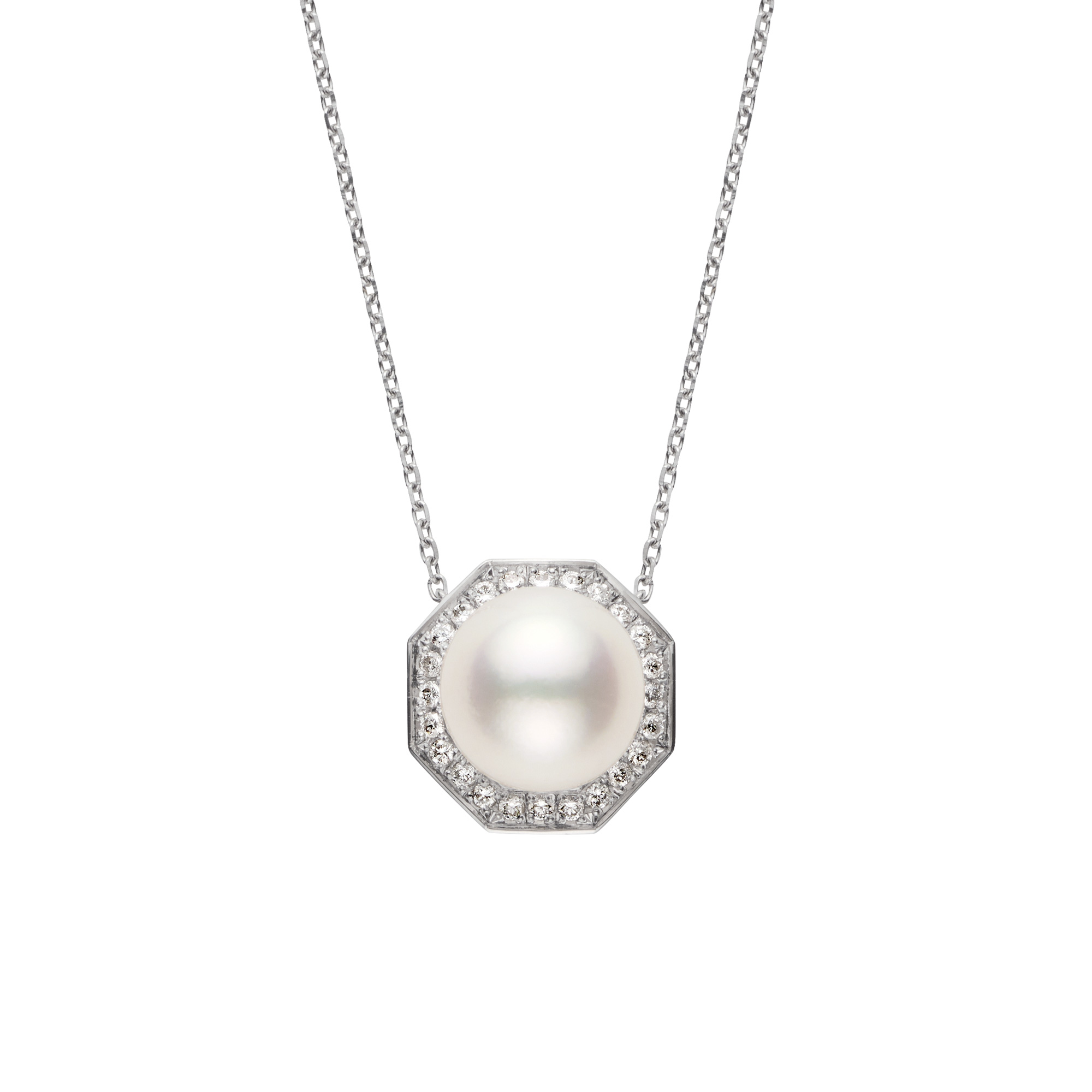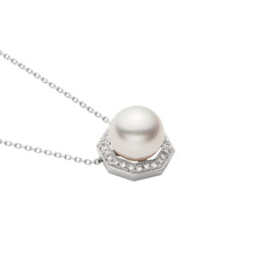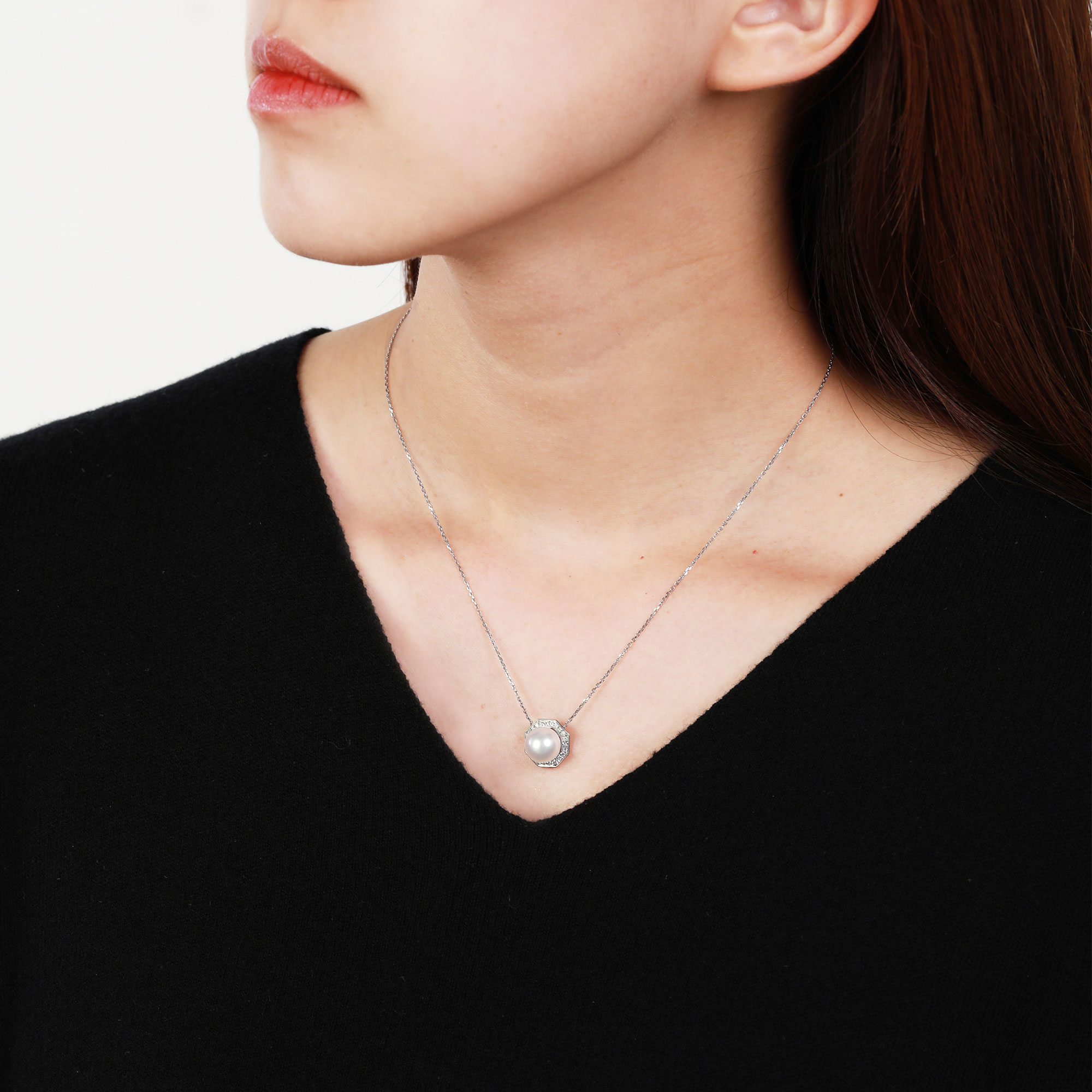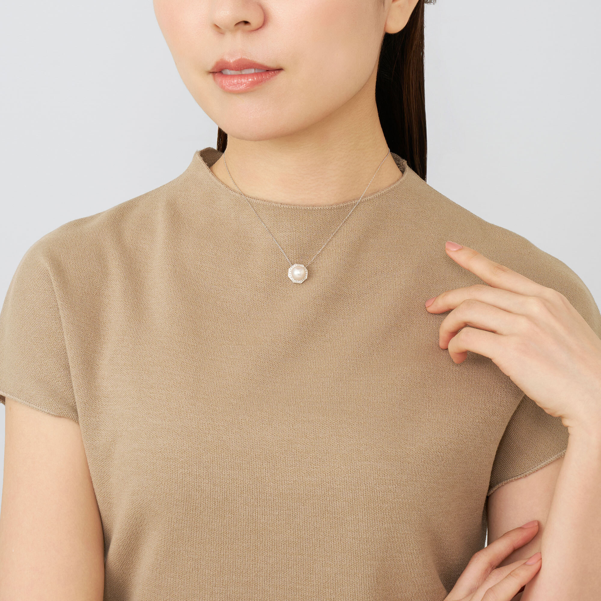 隙間なく敷きつめられたダイヤモンドの輝きが大粒パールの存在感に華やかさをプラスします。